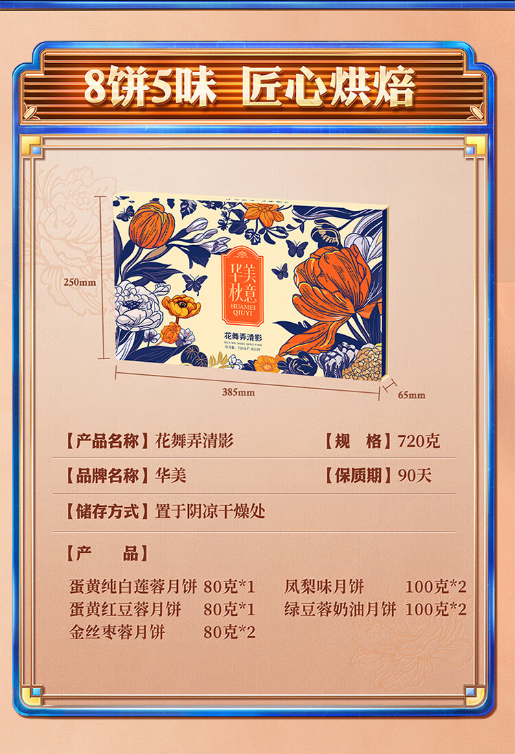 华美 花舞弄清影月饼礼盒 720g 1盒