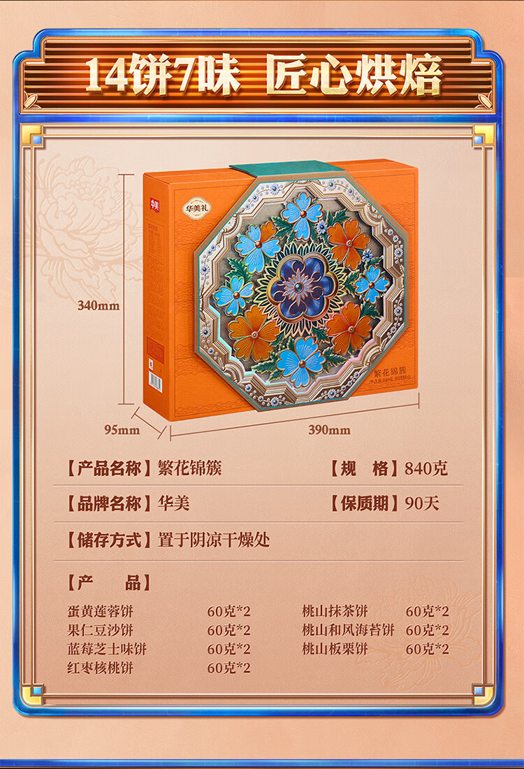 华美 繁花锦簇月饼礼盒 840g 1盒