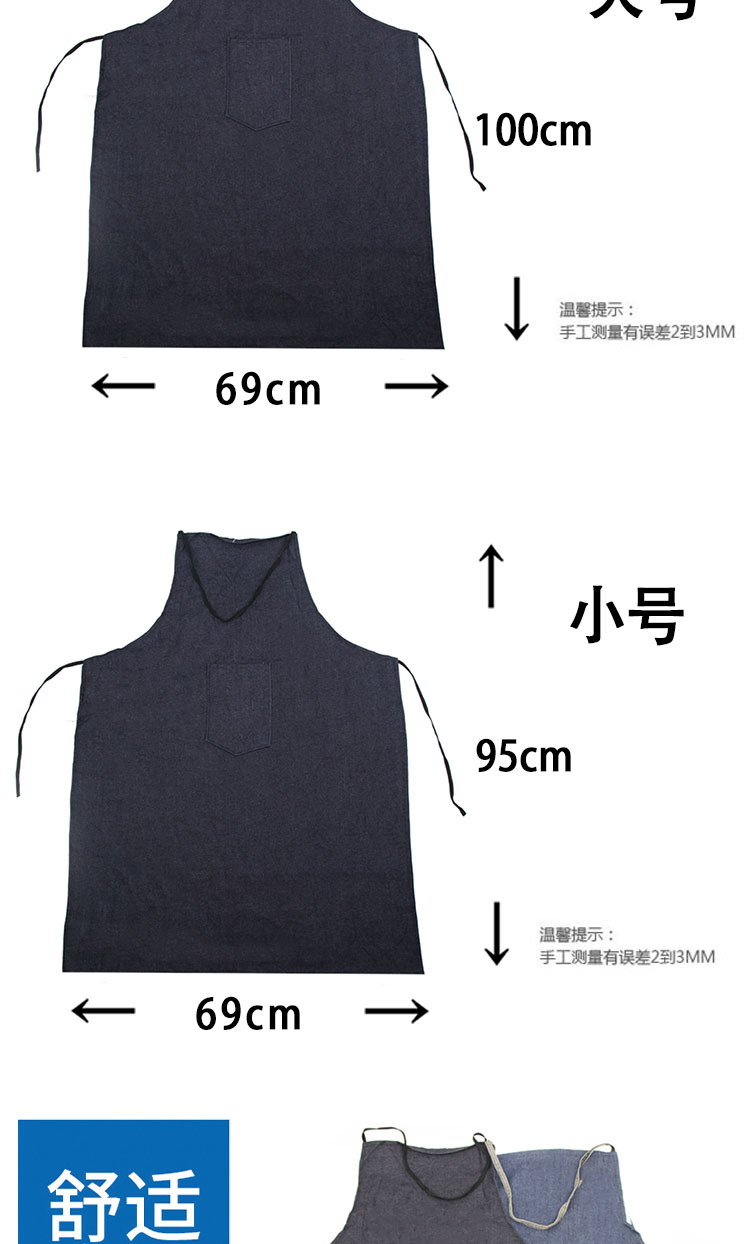 海斯迪克 劳保围裙 KG18-4 牛仔布 大号100*90cm 1件