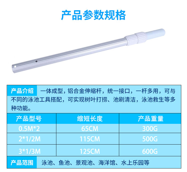 海斯迪克 泳池捞网杆子 KQ20-5 0.5*2/1米 铝合金伸缩杆 1根