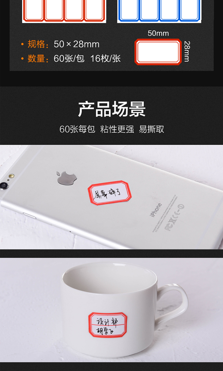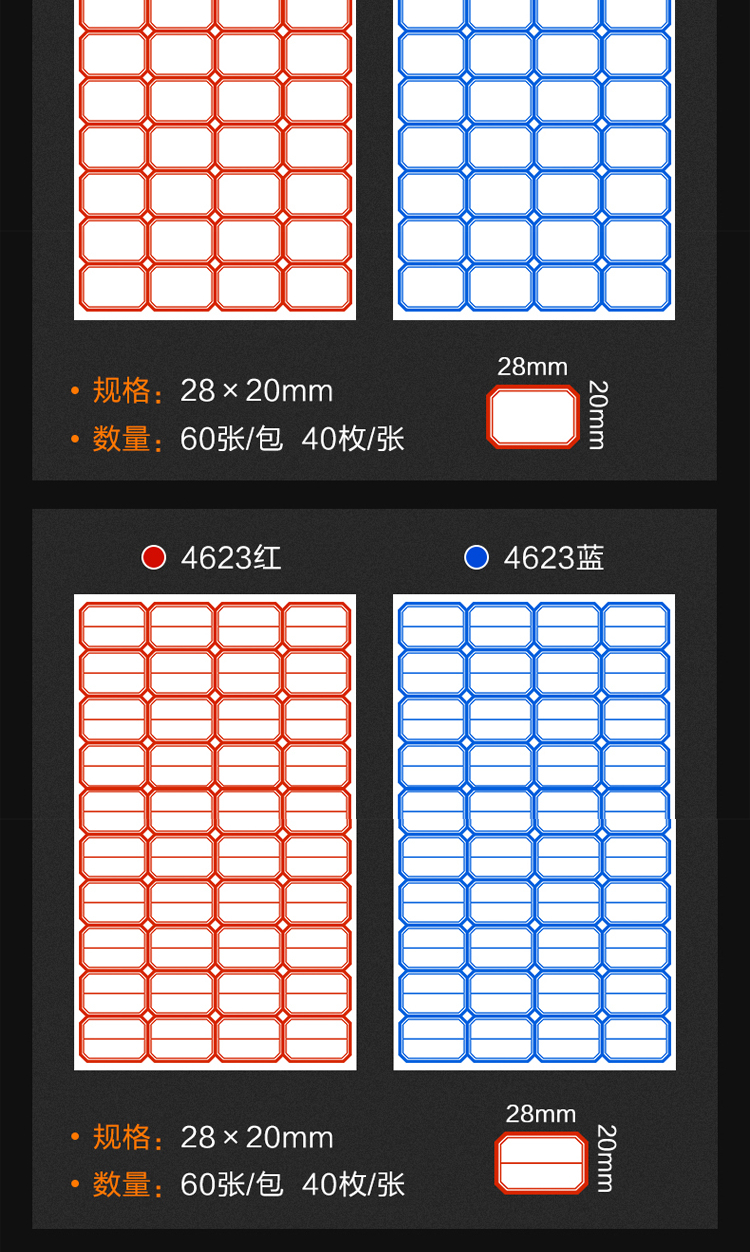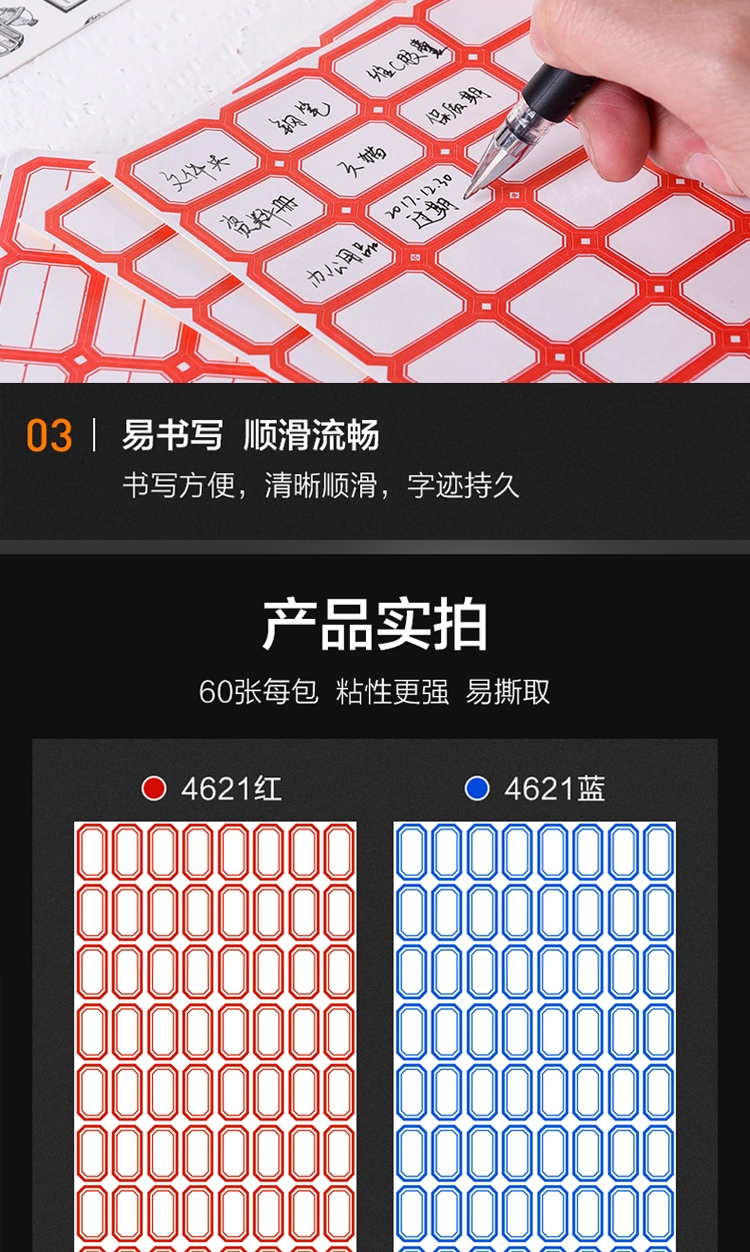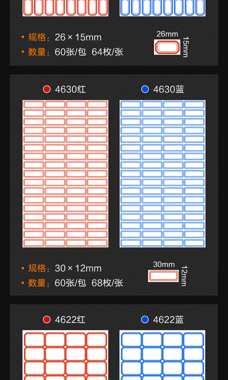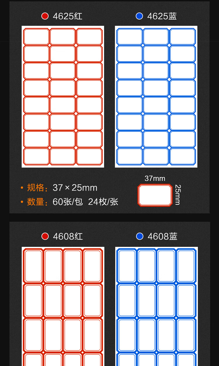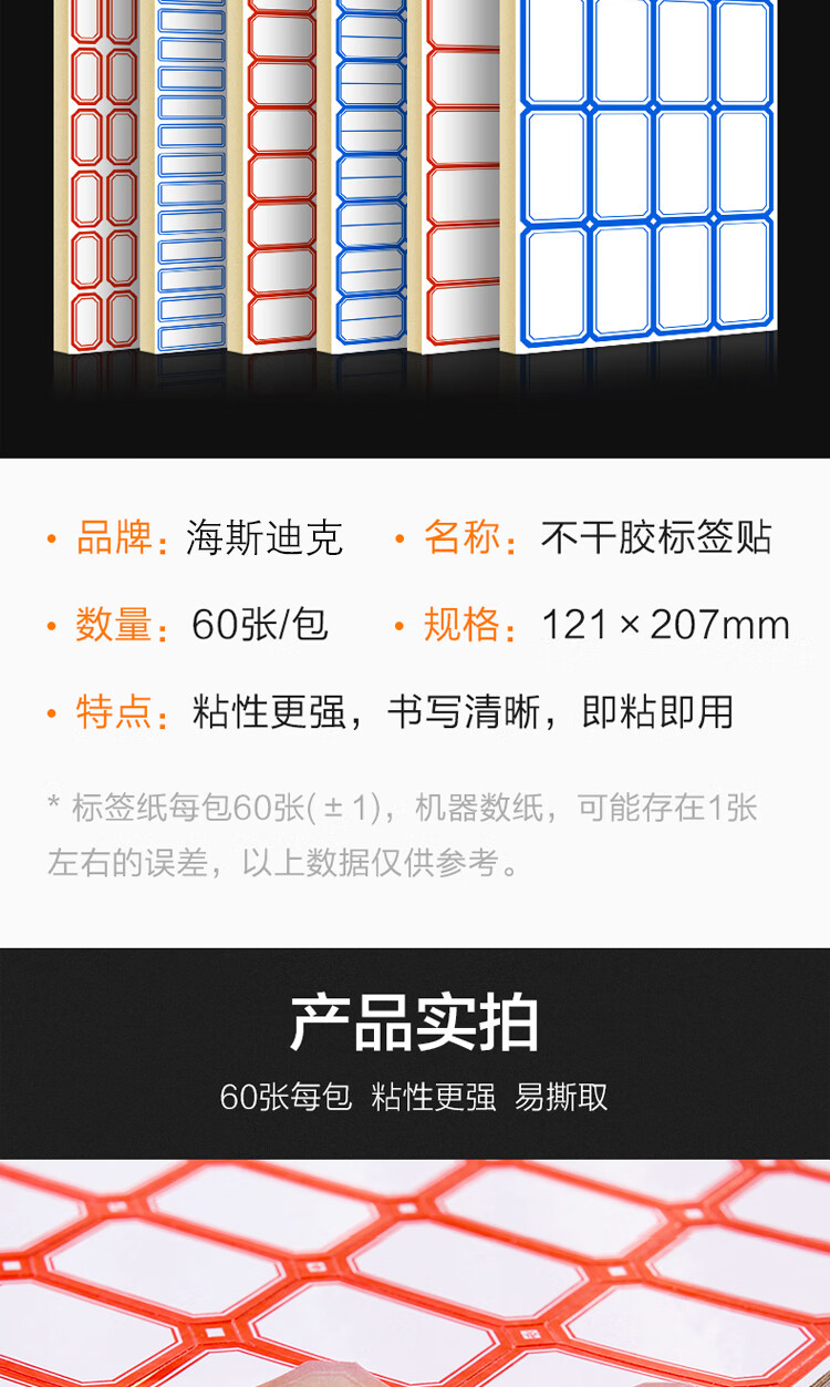 海斯迪克 不干胶标签 KP15-9 蓝色37*25mm 1440枚 1包