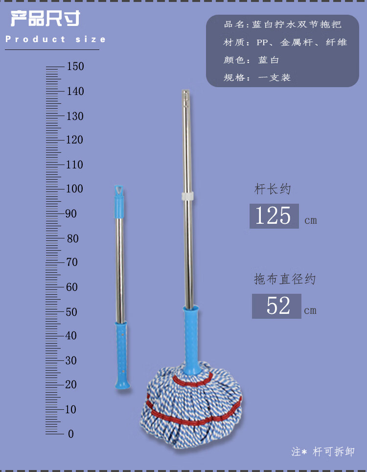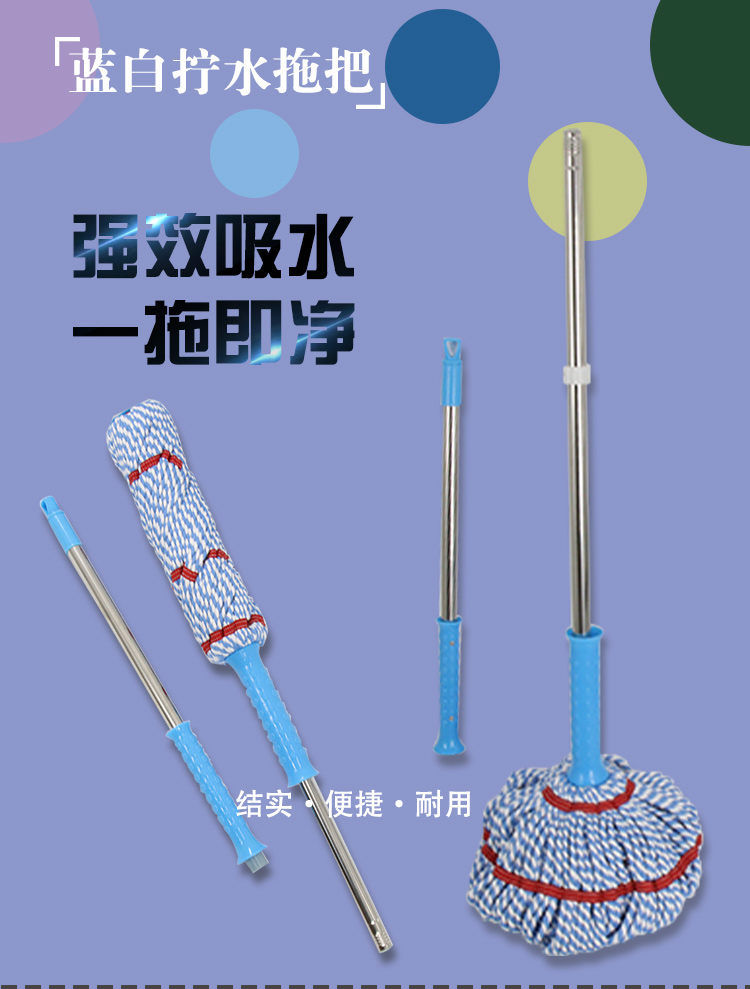 蓝白拧水拖把双节杆