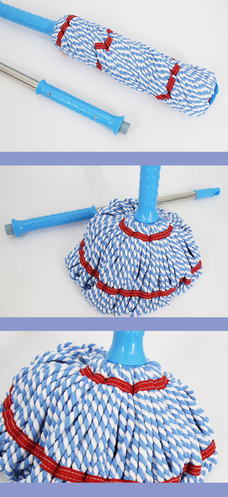 宽蓝白棉线拖把