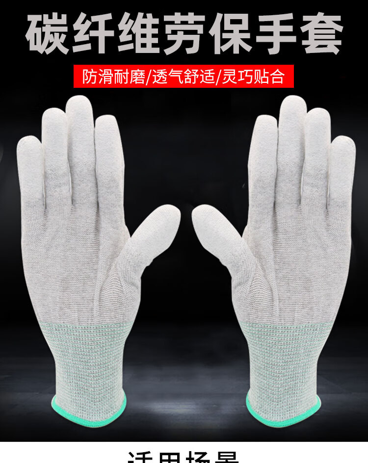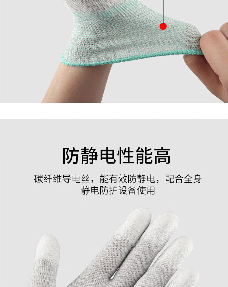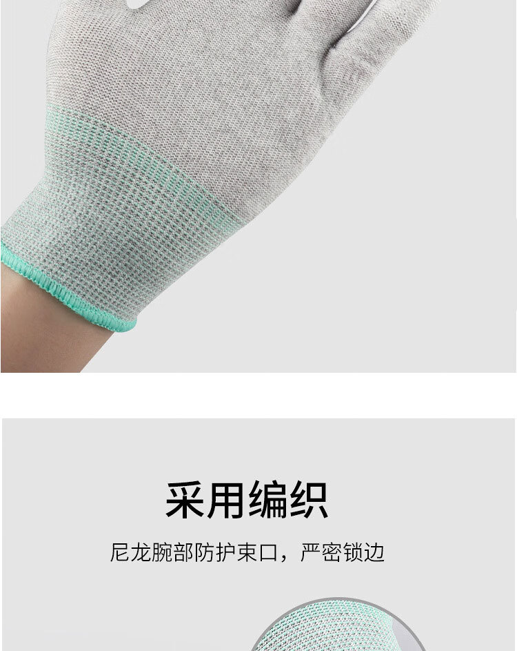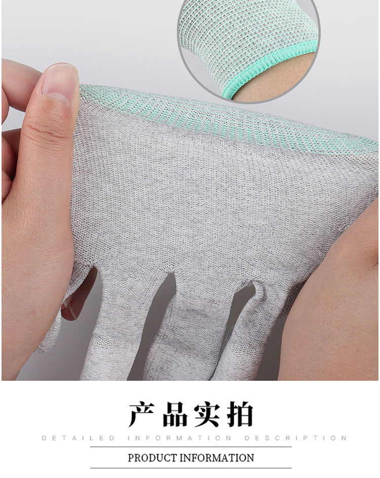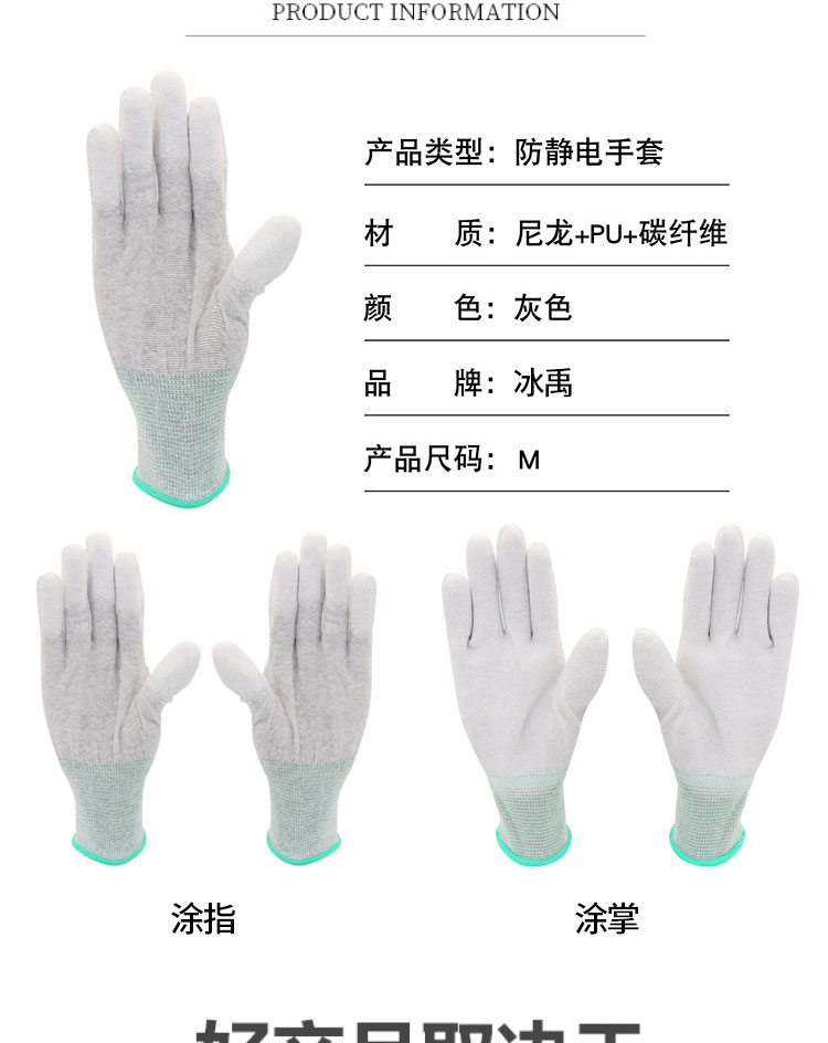 冰禹 碳纤维PU防静电涂指手套 BYly-203 灰色 M码 10双 1包
