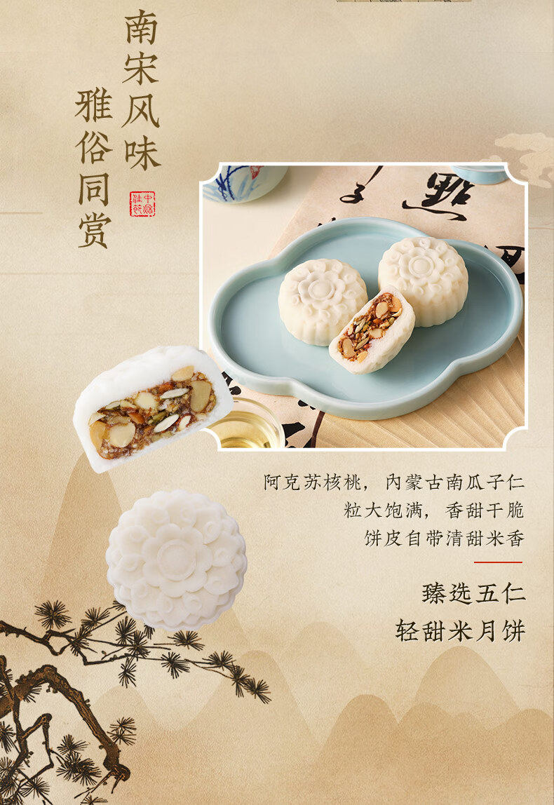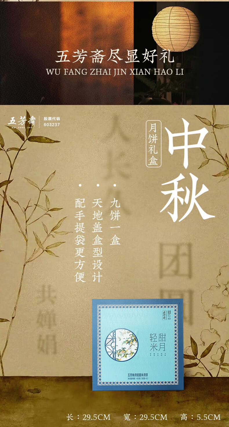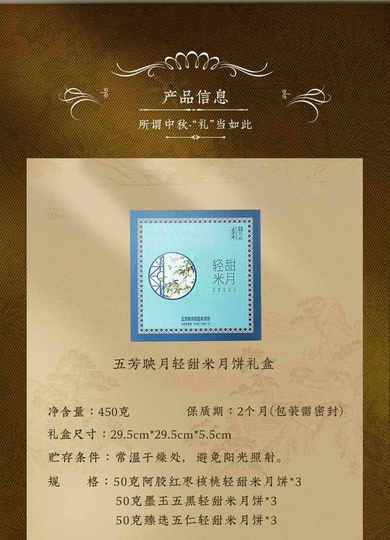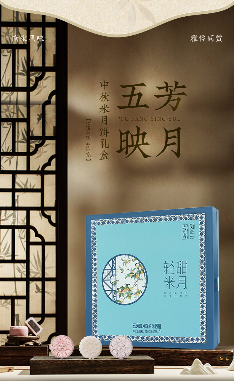 五芳斋 映月轻甜米月饼礼盒 450g 1盒