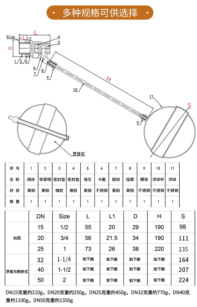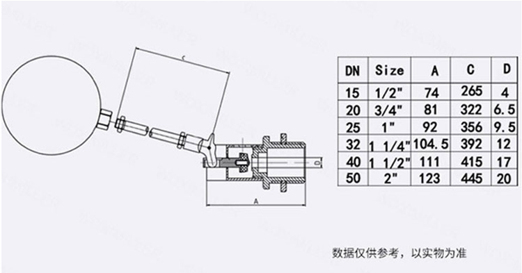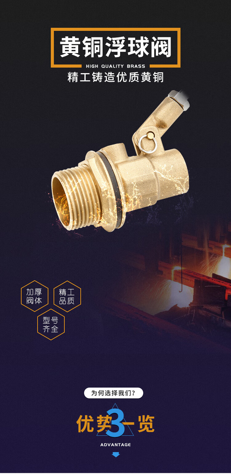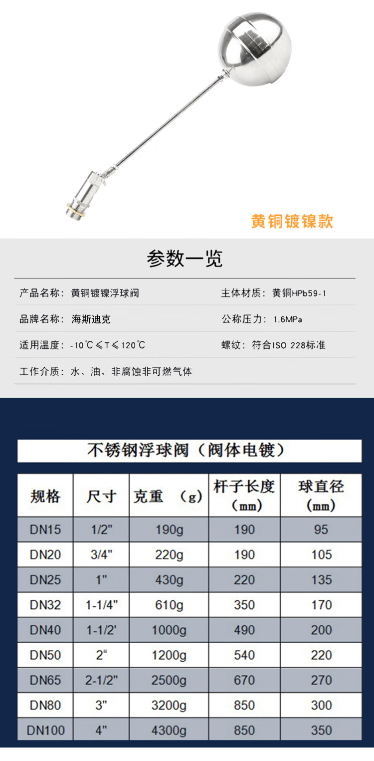 海斯迪克 黄铜外螺纹镀镍浮球阀 KL29-12 DN50 2寸 1个
