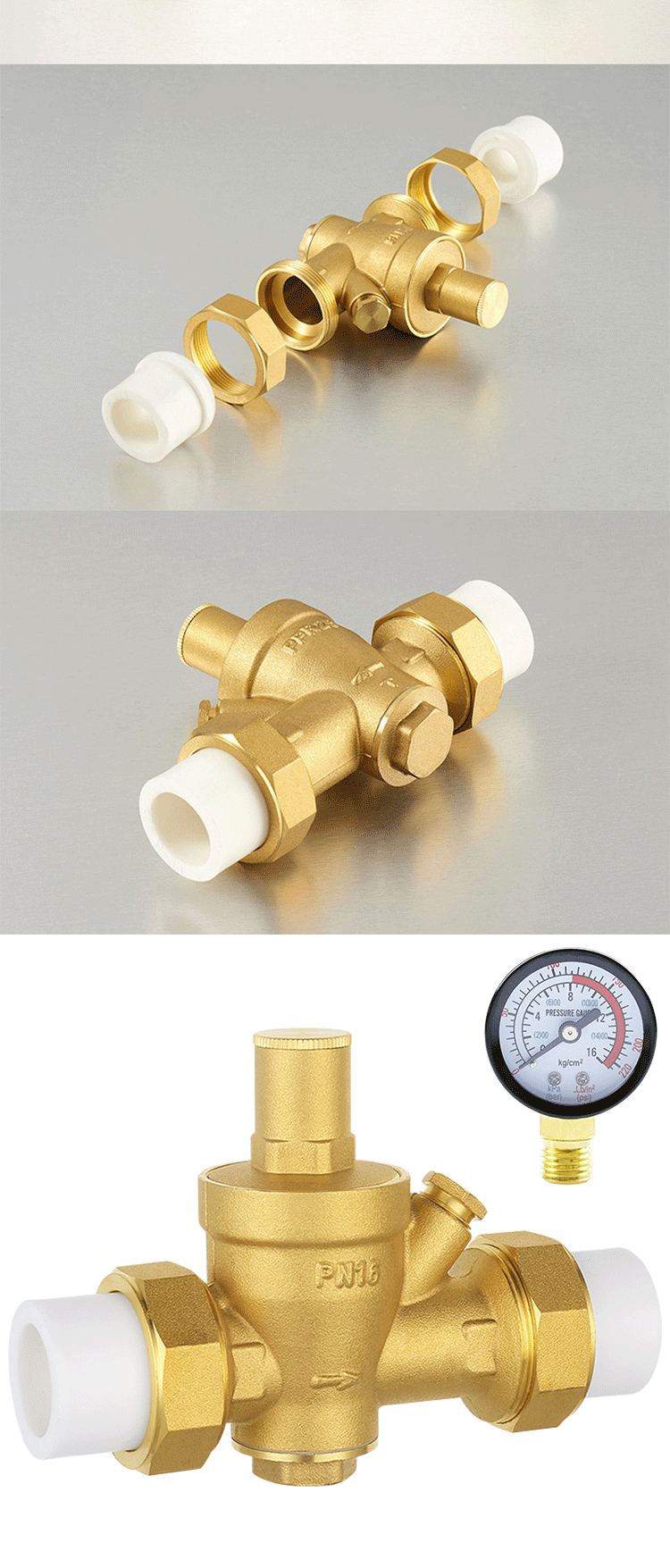 海斯迪克 PPR双活接减压阀 KL30-6 带压力表 DN25 1个