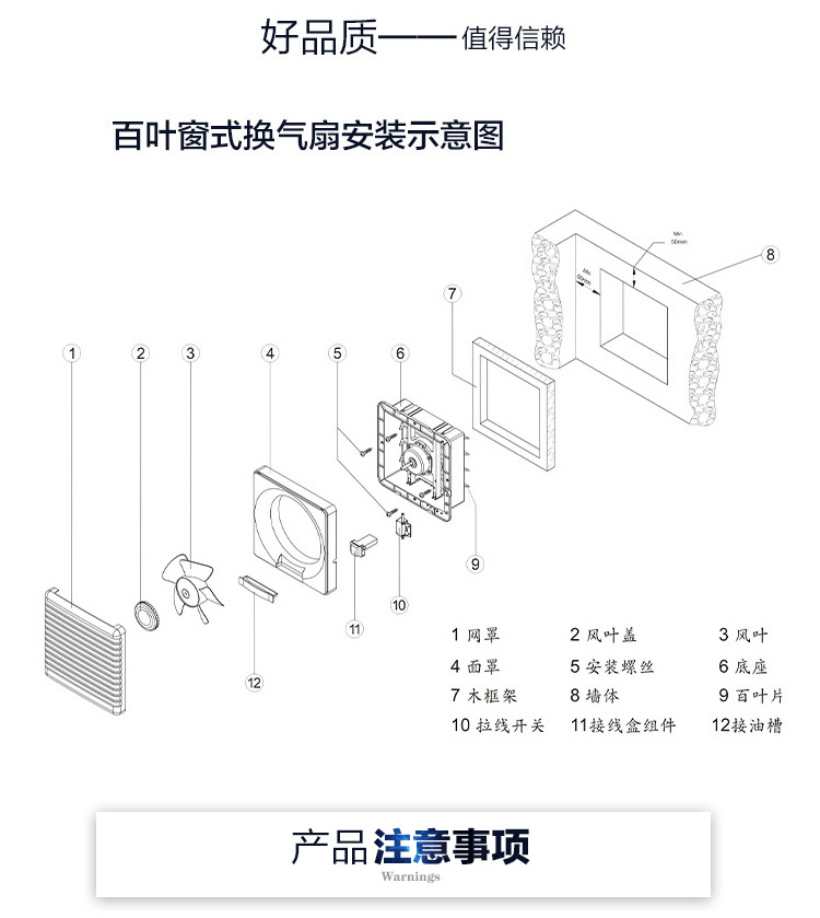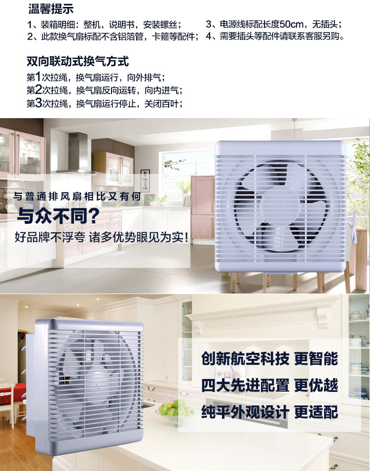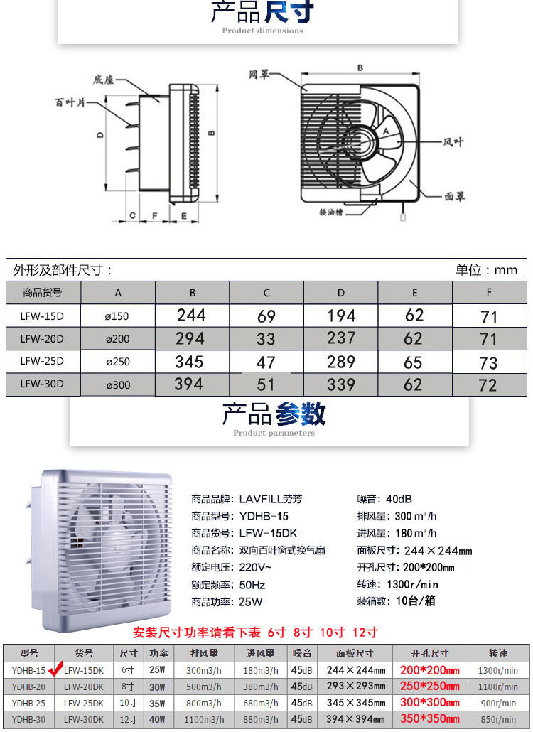 劳芳 方形含百叶排风扇 FA-40 12寸 双向(开孔350*350) 1个