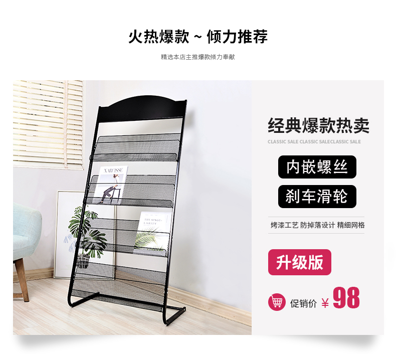 国产通用 报纸架夹子 B-1372 银灰色 63*27*80cm 1个