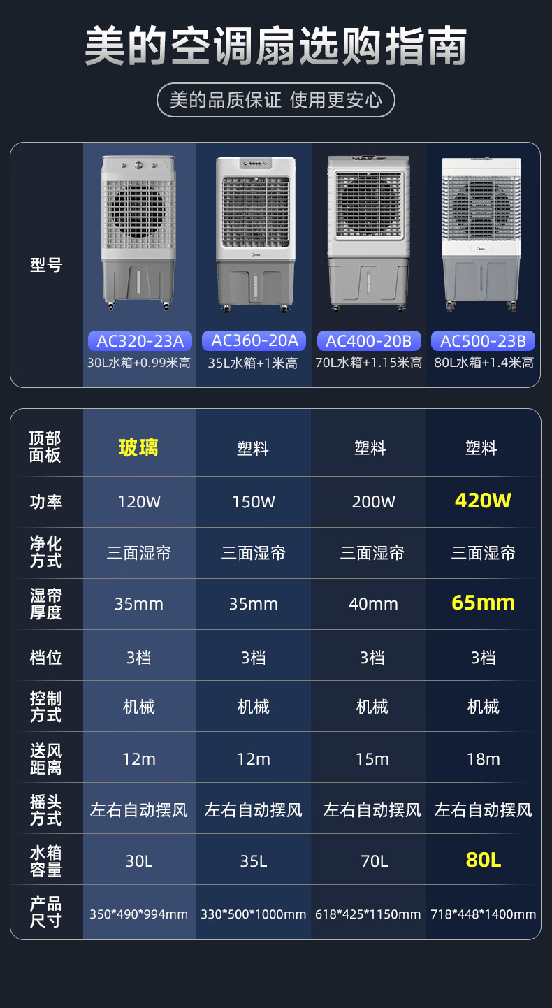 美的 可移动冷风扇 AC400-20B 200W 1台