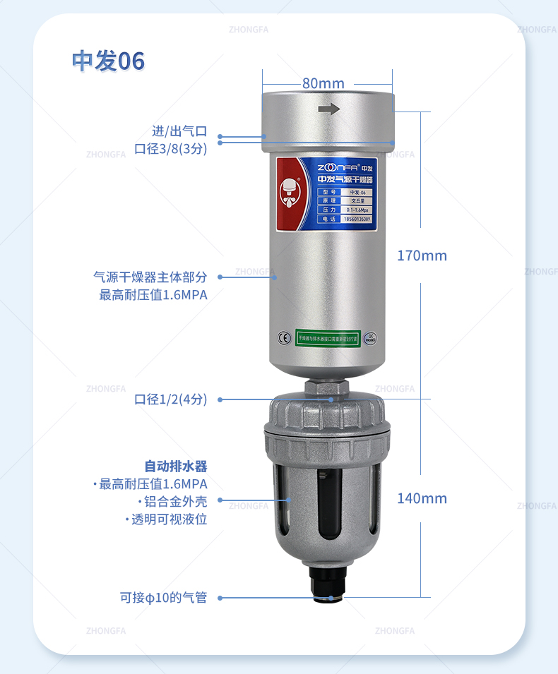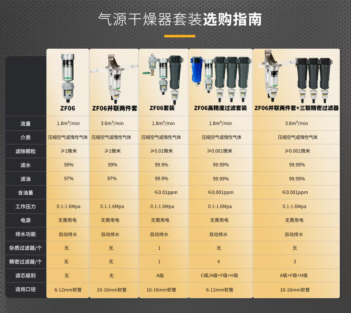 中发 文丘里精密气源干燥器 ZF06套装(精度0.01微米)干燥器+除杂质+除油雾 1套