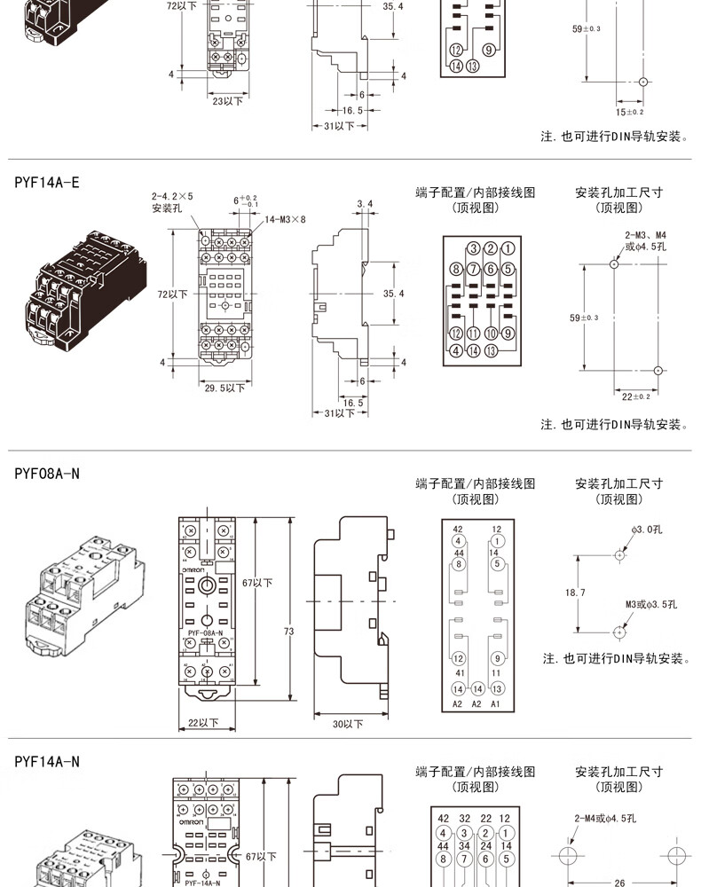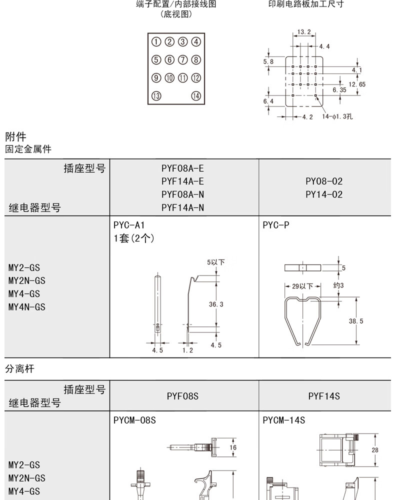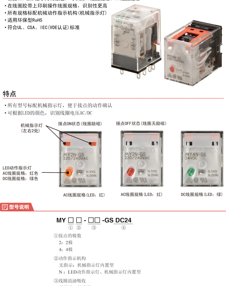 欧姆龙 微型中间继电器 MY2N-GS-R DC24 (含 PYFZ-08-E 底座) 1套