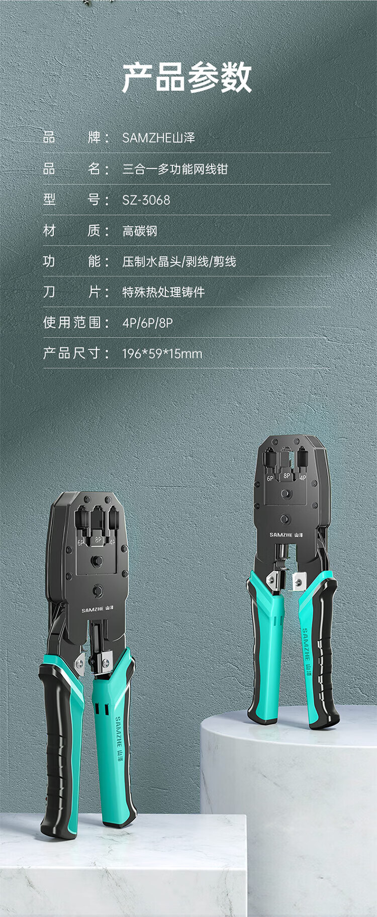 山泽 网线钳 SZ-3068 高碳钢 4P/6P/8P 196mm 1把