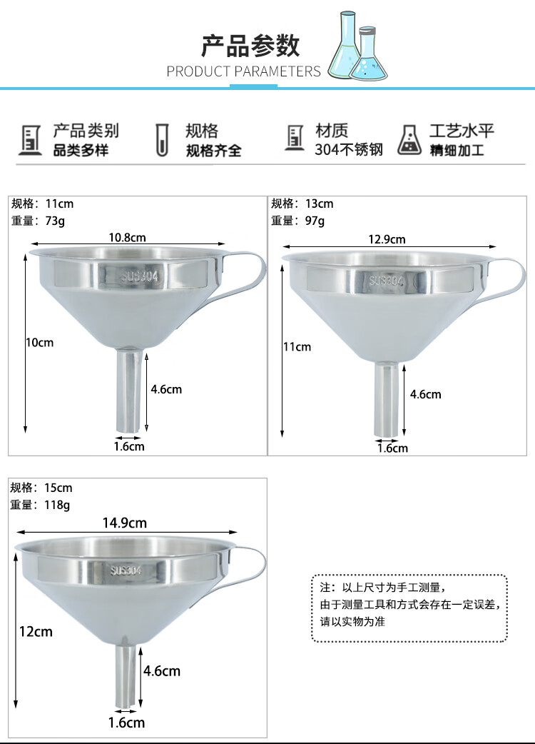 海斯迪克 漏斗 KY21-3 304不锈钢 口径15cm 1个
