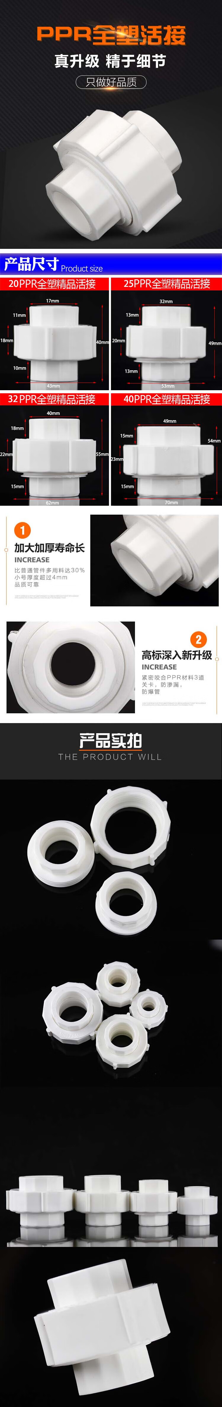 海斯迪克 PPR全塑活接 KL54-3 32mm 1个