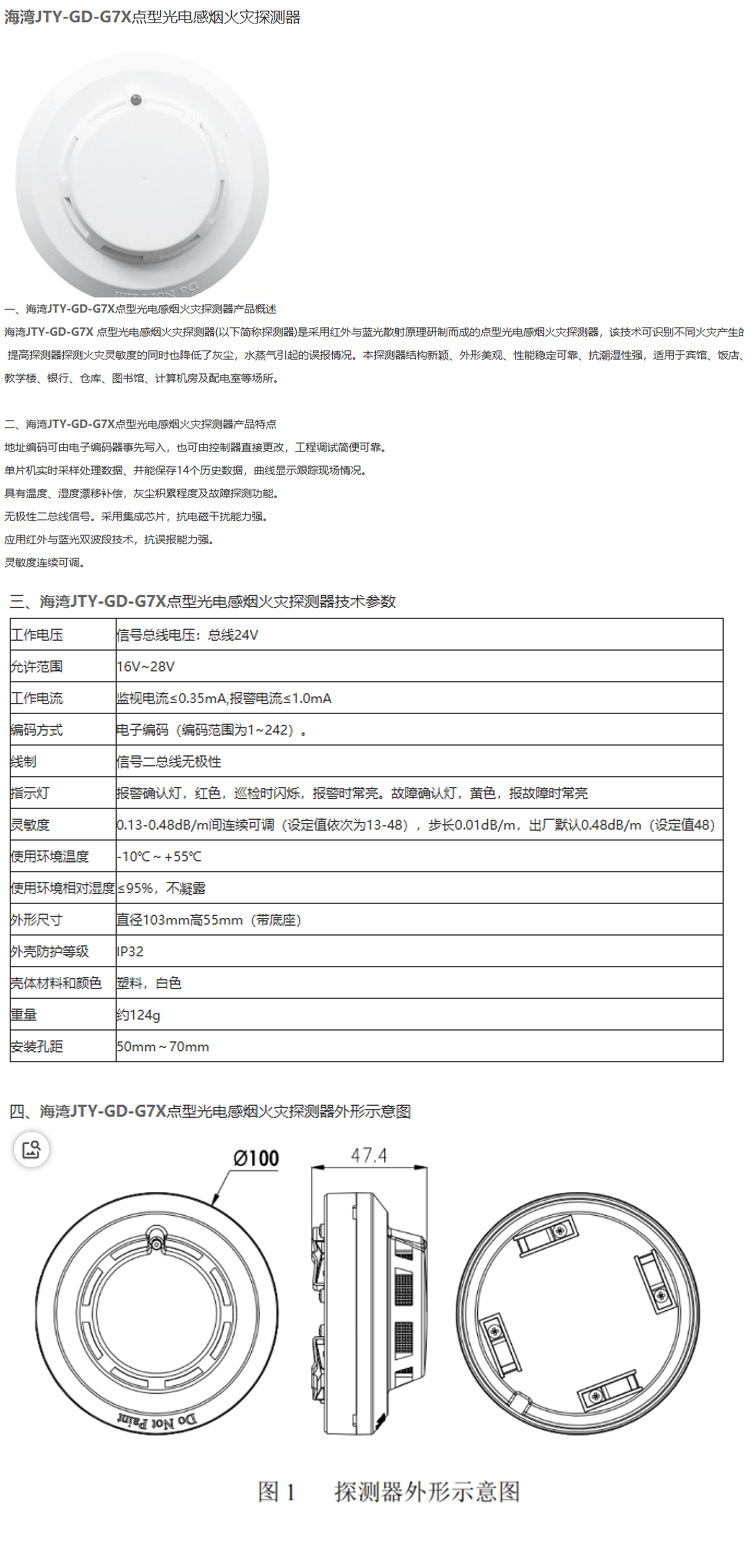 海湾 点型光电感烟火灾探测器 JTY-GD-G7X 24V 1个