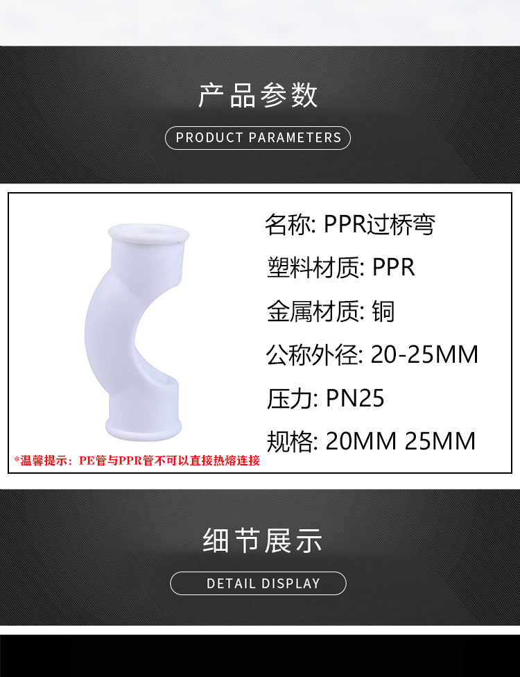 海斯迪克 PPR过桥弯头 KL61-1 20mm 1个