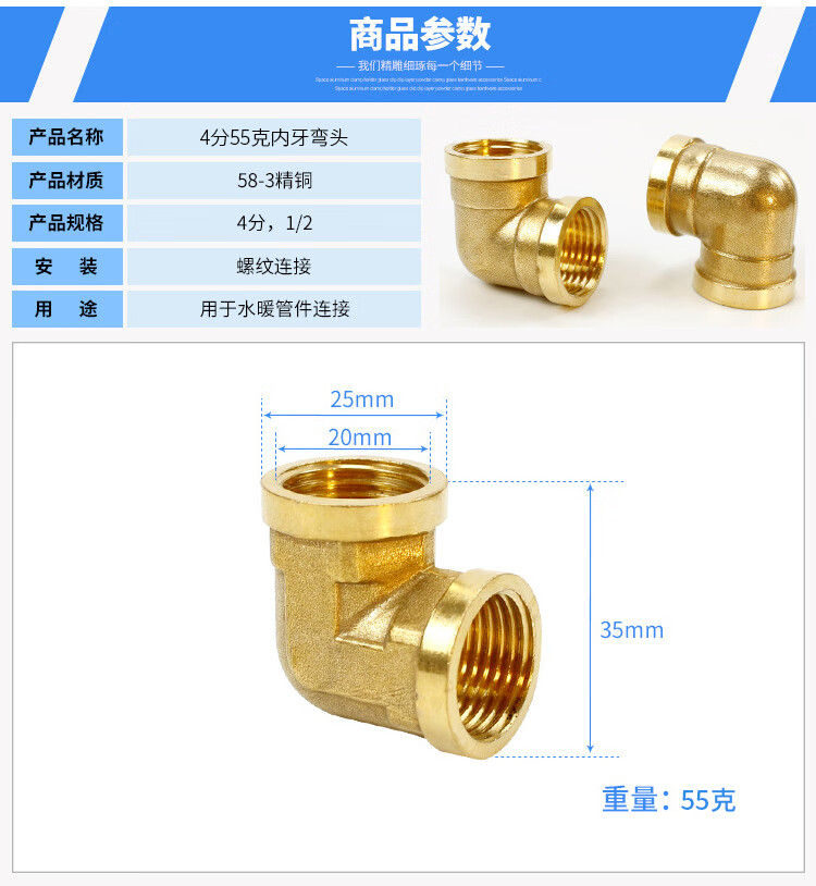 海斯迪克 90度铜4分内丝弯头 KL74-1 45g 1个