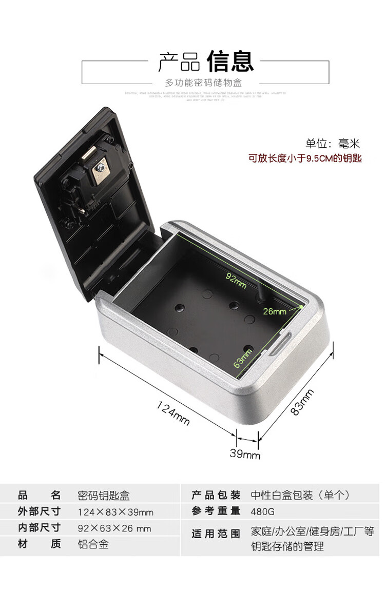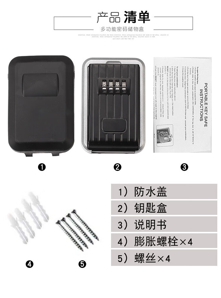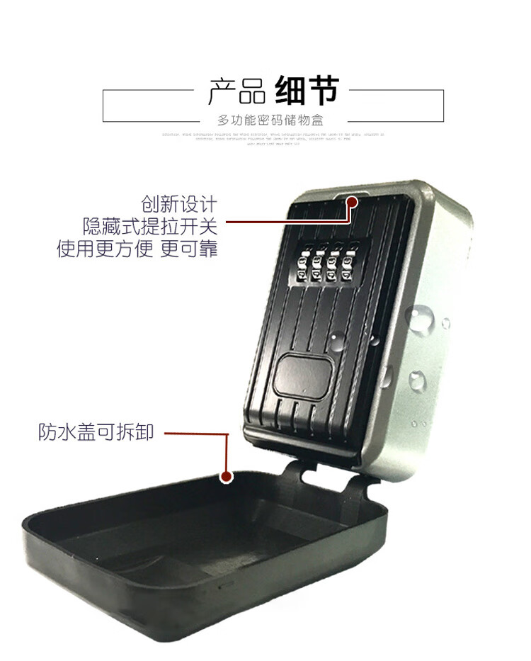 海斯迪克 密码锁 KA13-1 铝合金 黑色 壁挂式密码盒 1个