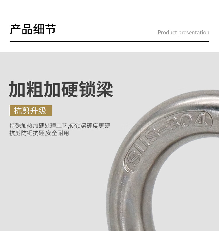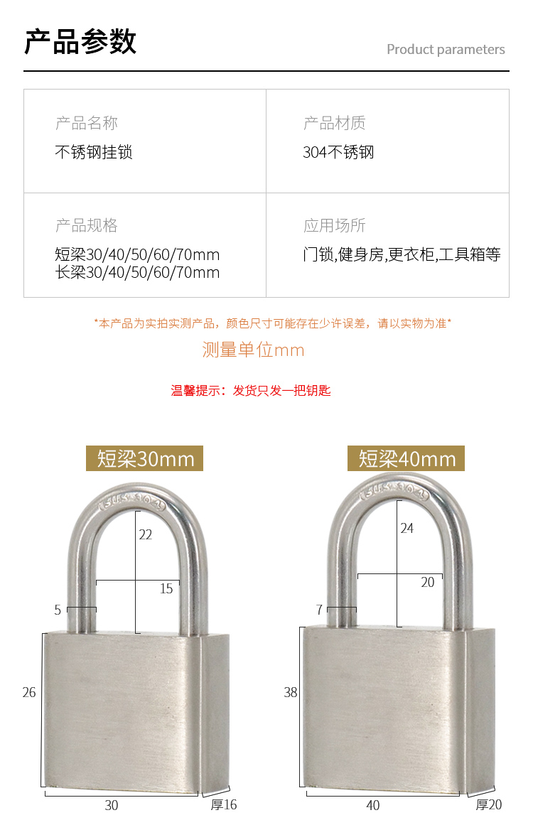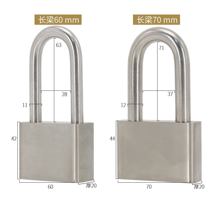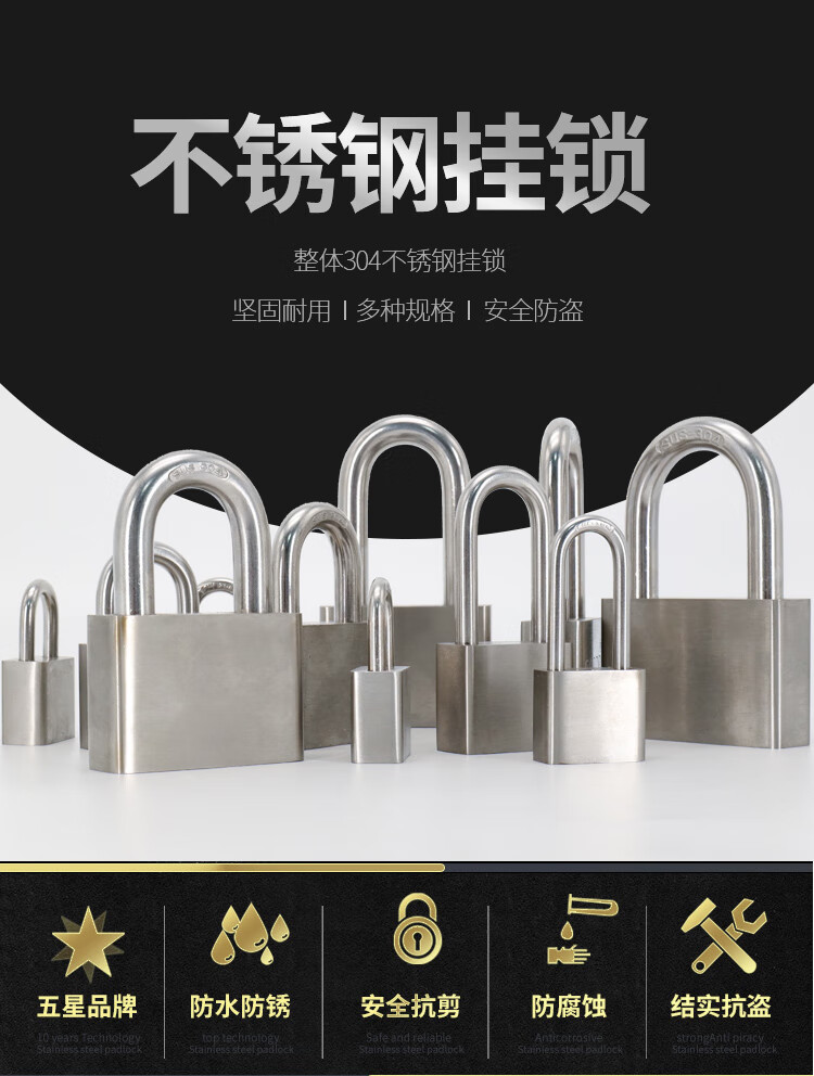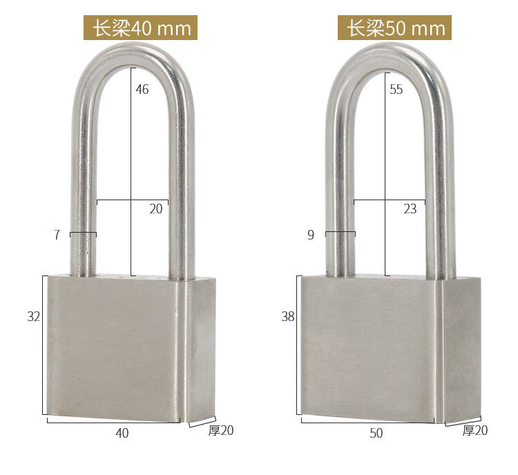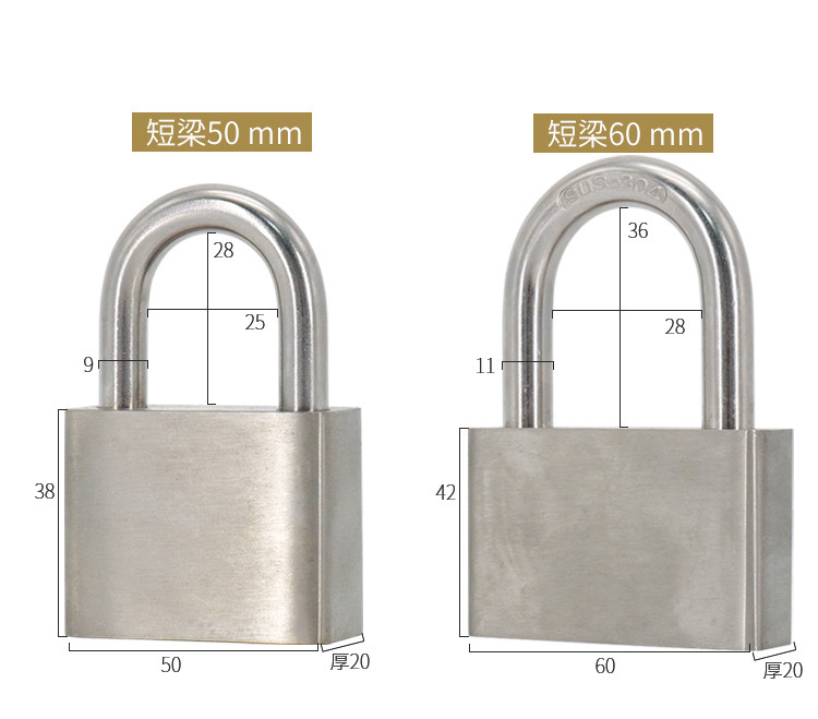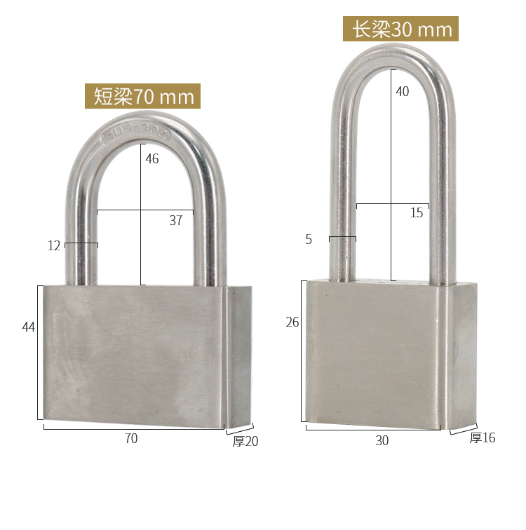 海斯迪克 挂锁 KA14-3 304不锈钢 本色 50mm短梁通开 1个