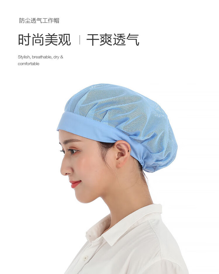 海斯迪克 防尘透气工作帽 KG20-3 宽边蓝色 1顶