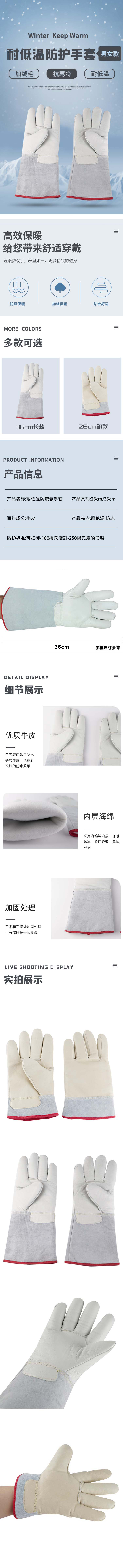 海斯迪克 耐低温防护手套 KG24-5 牛皮均码白色26cm 1双