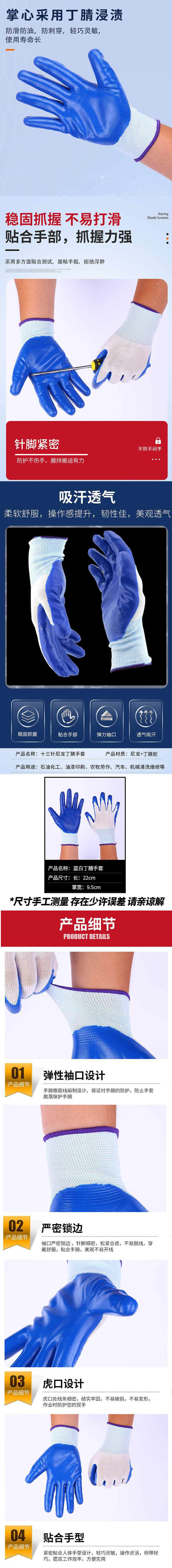 海斯迪克 丁腈挂胶手套 KG34-1 均码 白面蓝掌 12双 1包