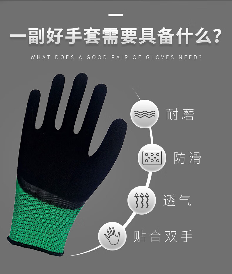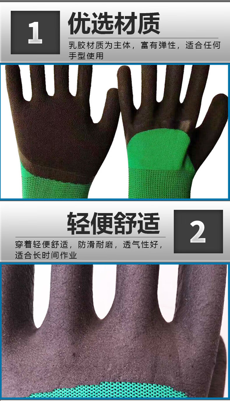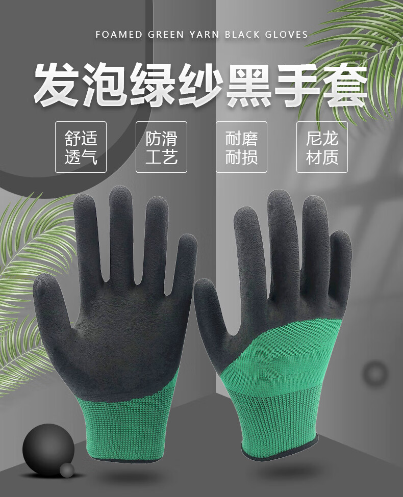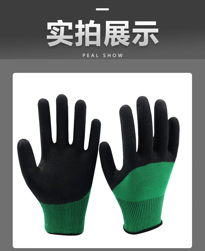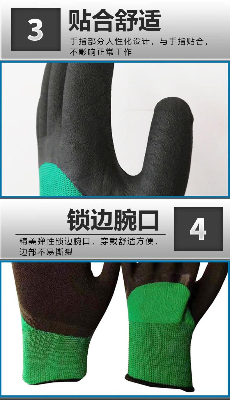 海斯迪克 乳胶挂胶手套 KG34-2 均码 绿黑发泡 12双 1包