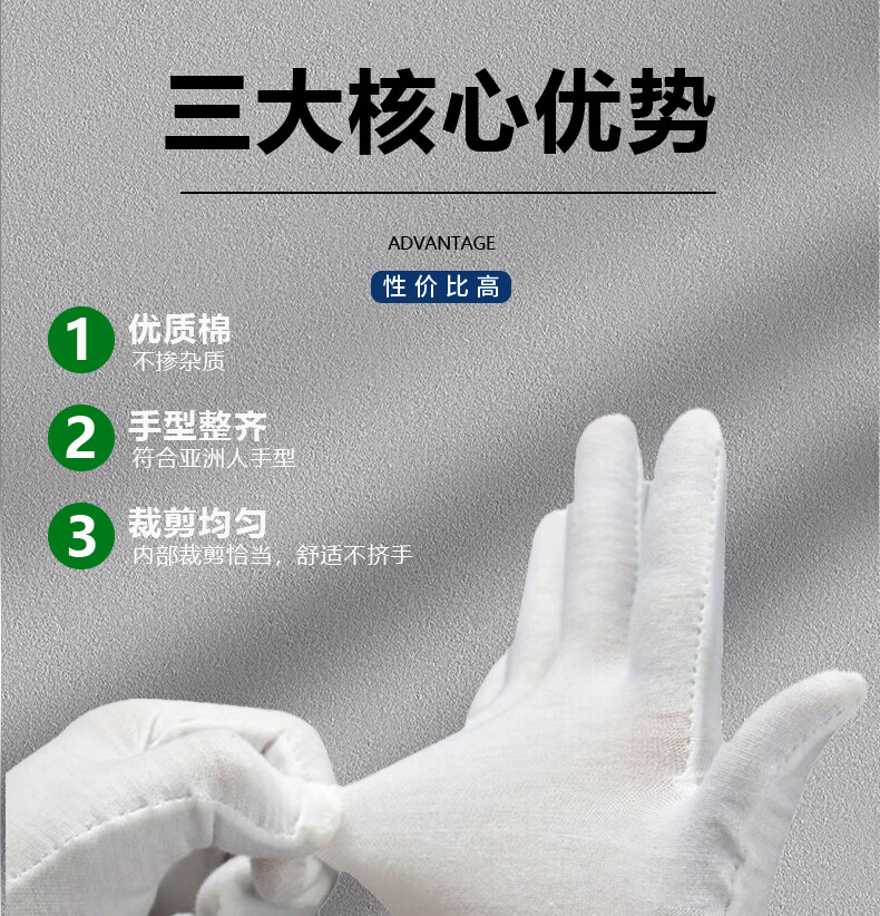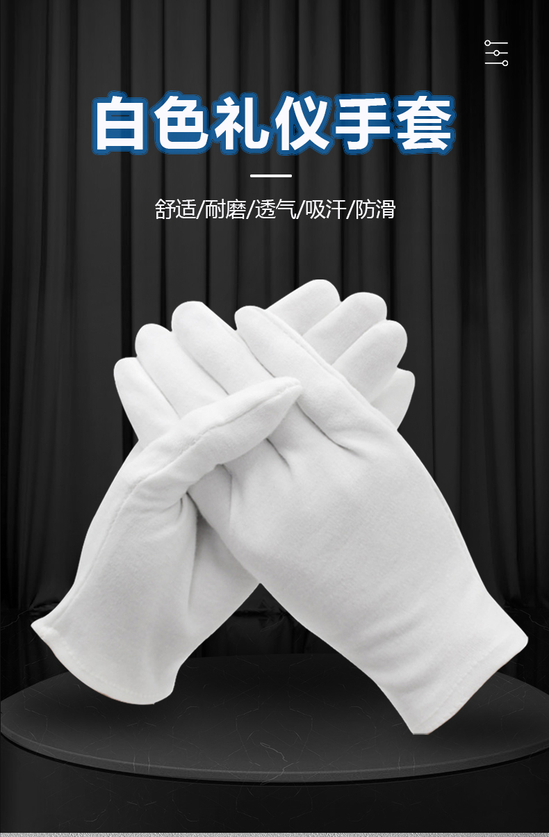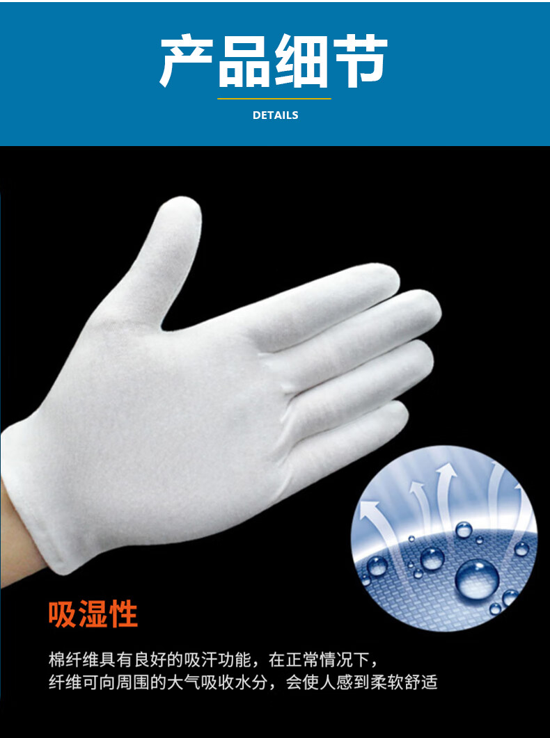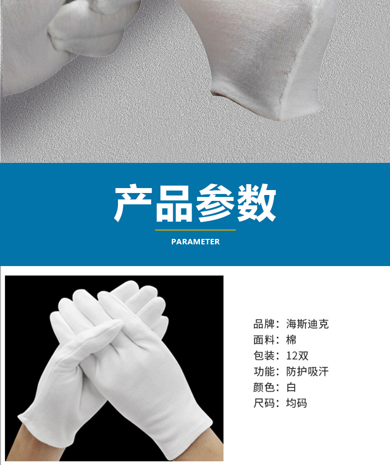 海斯迪克 白色棉礼仪手套 KG35-1 均码超薄款 12双 1包