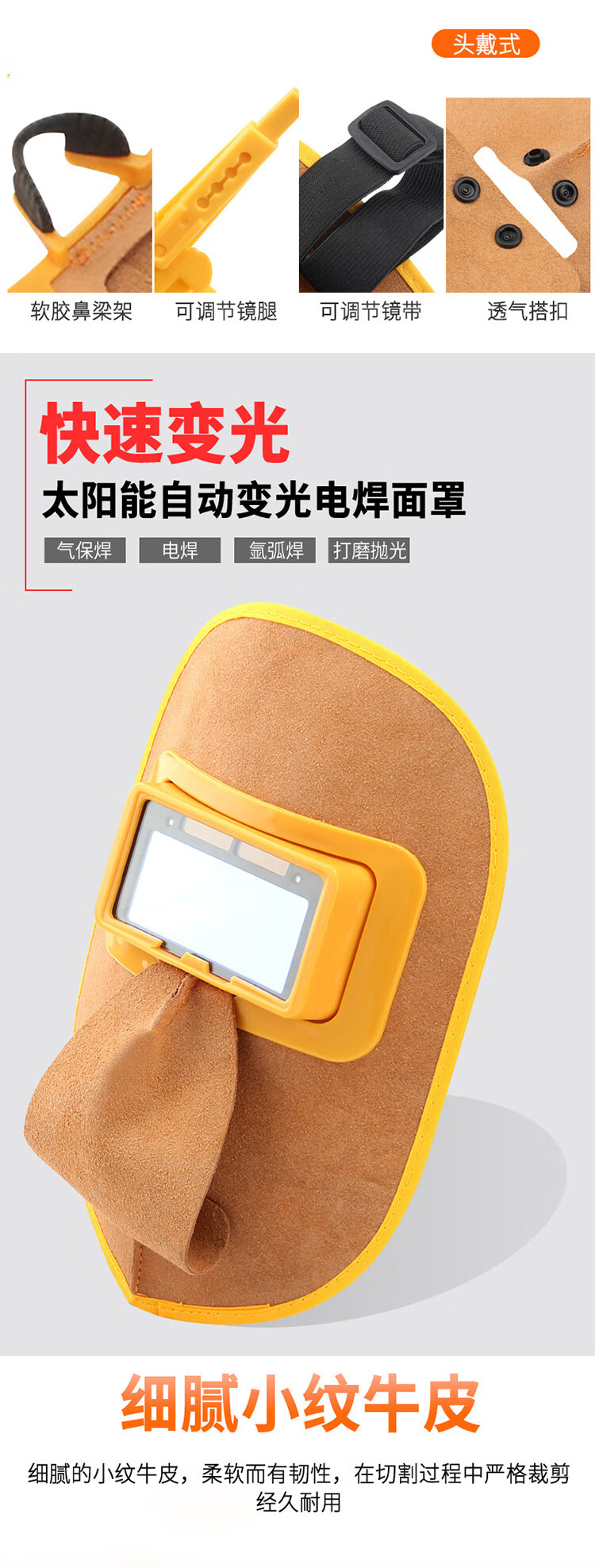 海斯迪克 翻盖变光电焊面罩 KG37-1 牛皮黄色均码 1件