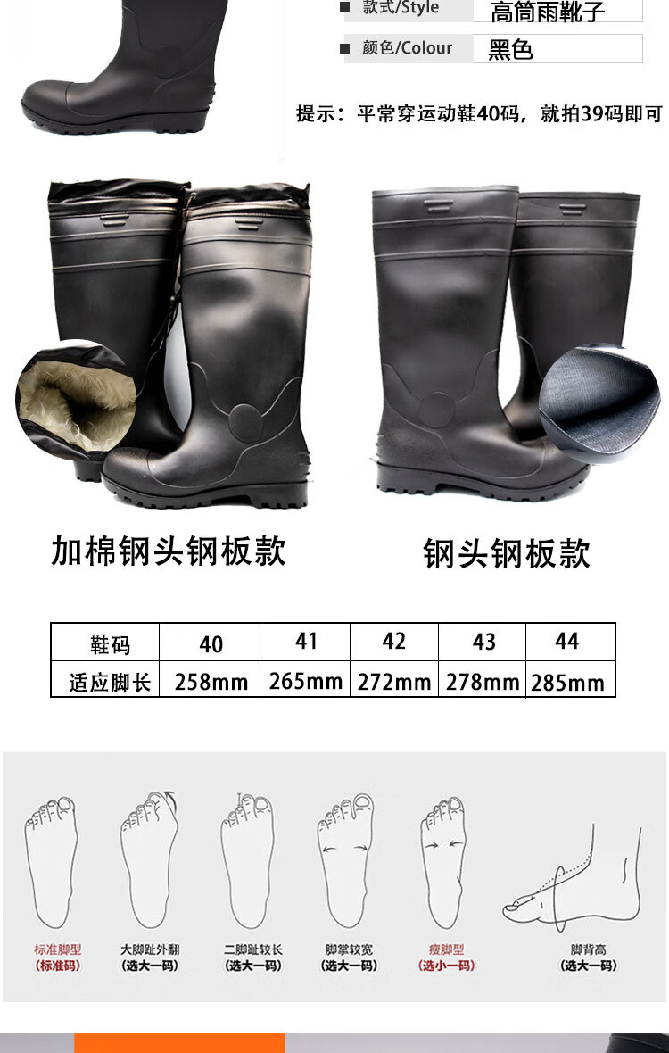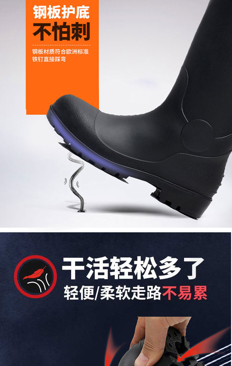 • 商品名称:海斯迪克 男式PVC高筒雨靴 钢头钢板款