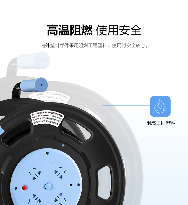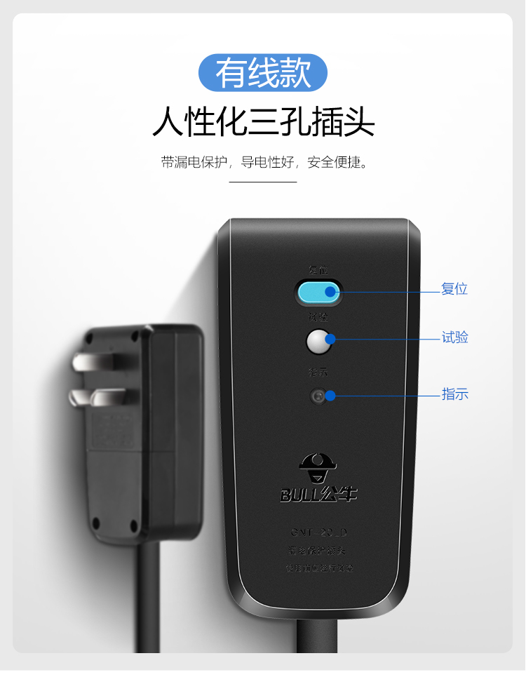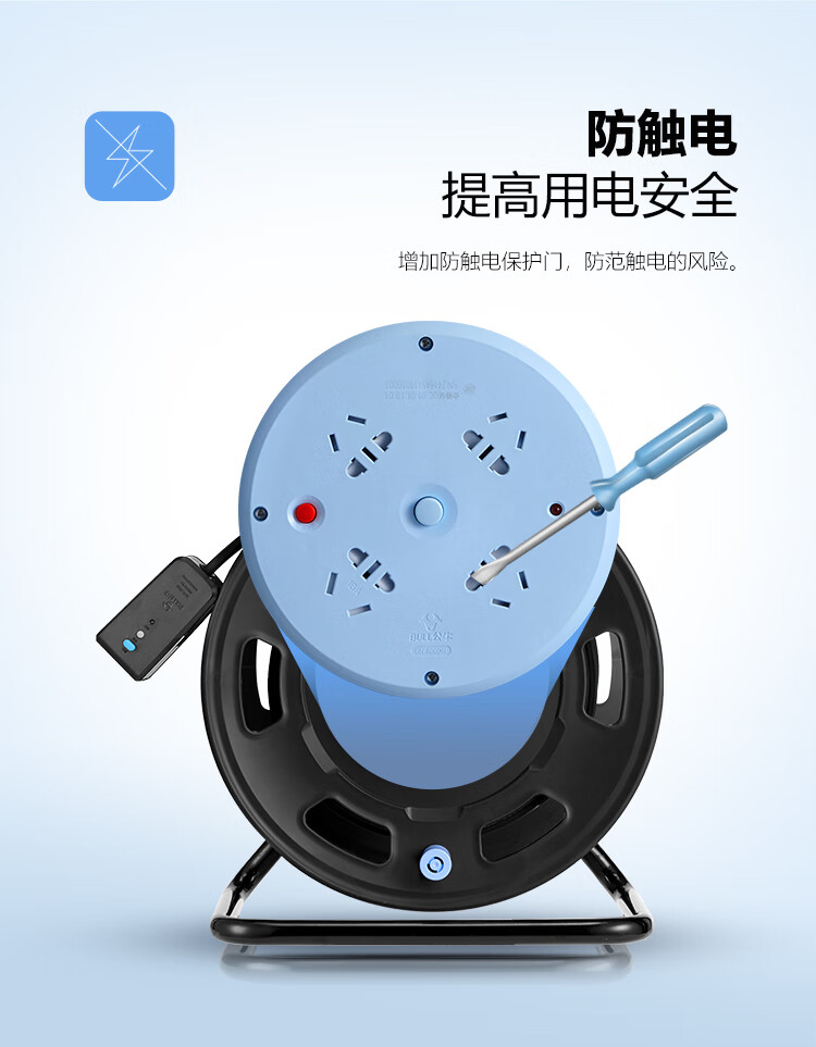 公牛 接线盘 806DN(S) 50米 3*1.5平方 3位10a五孔 1位16a五孔 带漏保插头 过热保护 1件