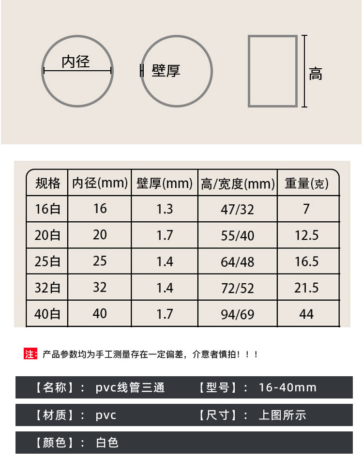 海斯迪克 PVC-U白色三通接头 KL83-1 Φ16mm 1个