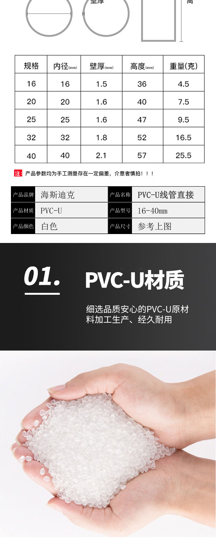 海斯迪克 PVC-U白色直接接头 KL87-3 Φ25mm 1个