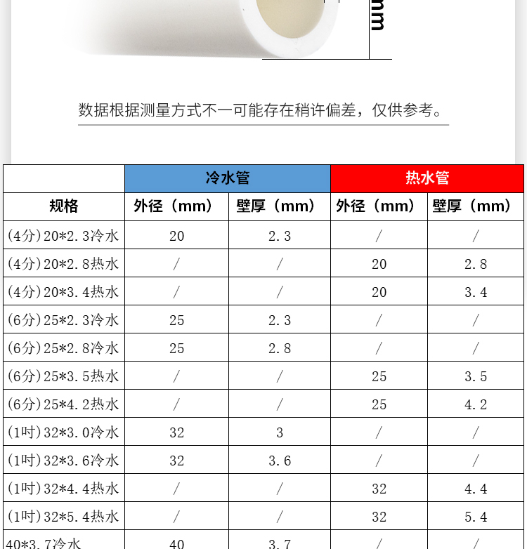 海斯迪克 PPR热水管 KL90-9 (1寸)32×4.4 1米