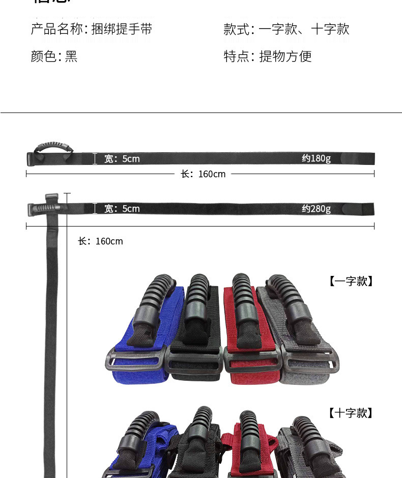 海斯迪克 手提捆绑带 KB8-2 黑色 十字款 160cm 1个