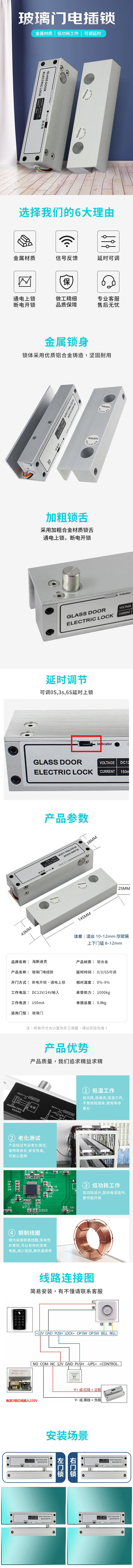 海斯迪克 玻璃门电插锁 KA18-3 铝合金 本色 左开电插锁 1套
