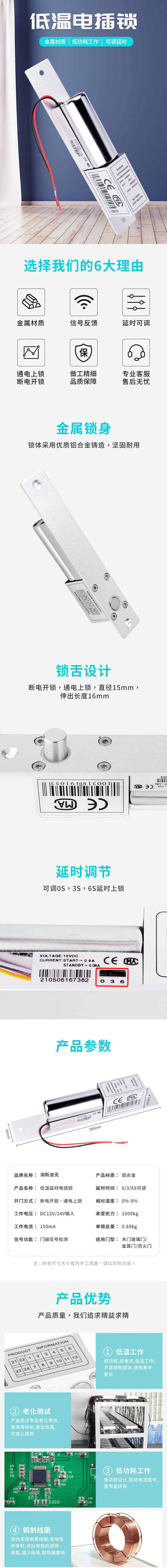海斯迪克 暗装电插锁 KA18-8 铝合金 本色 5线带反馈带灯 1套