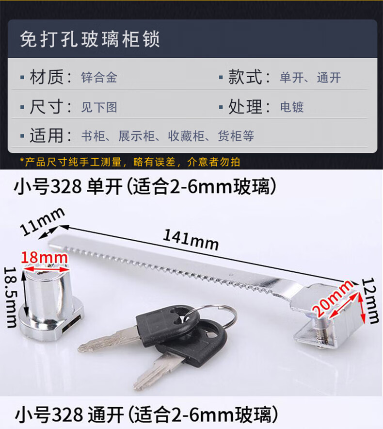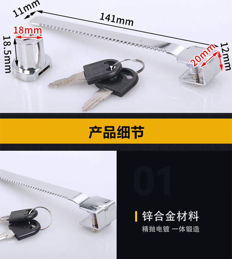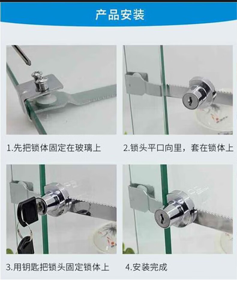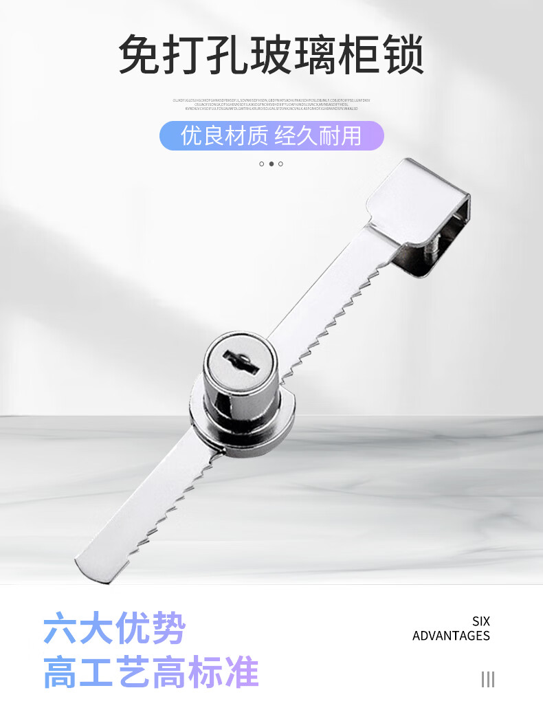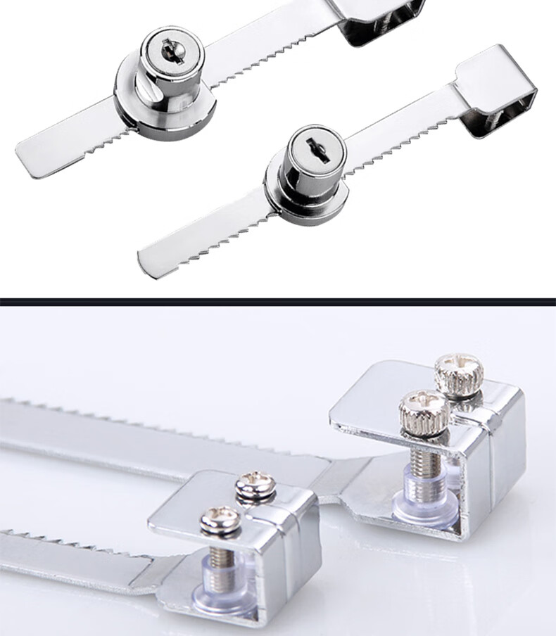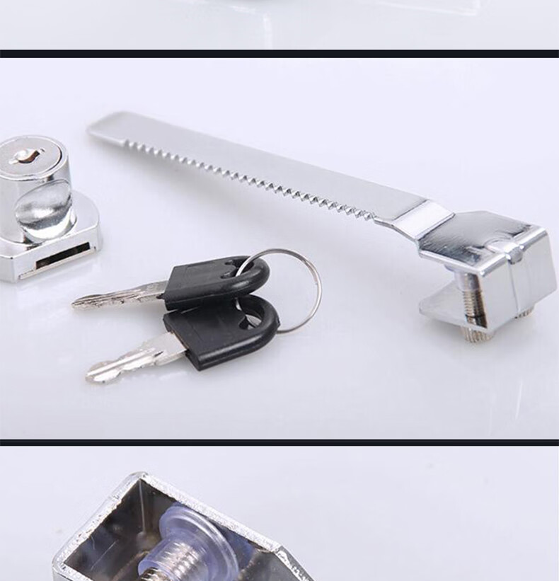 海斯迪克 免打孔玻璃柜锁 KA20-3 锌合金 本色 锯齿锁 通开 3个 1件