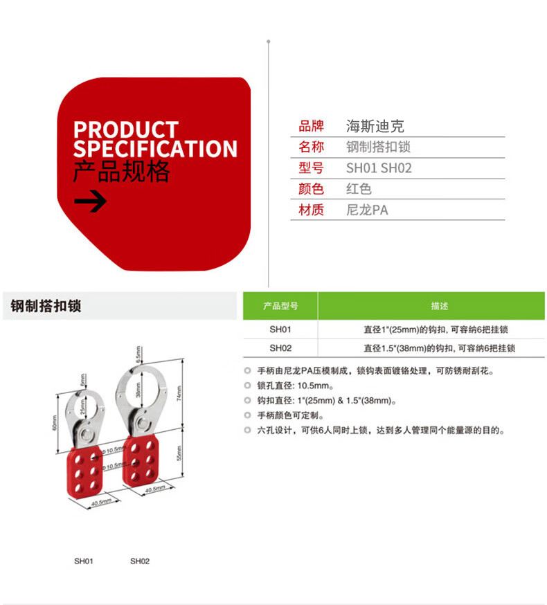 海斯迪克 搭扣锁 KA21-1 尼龙+钢 红色 直径25mm 1个