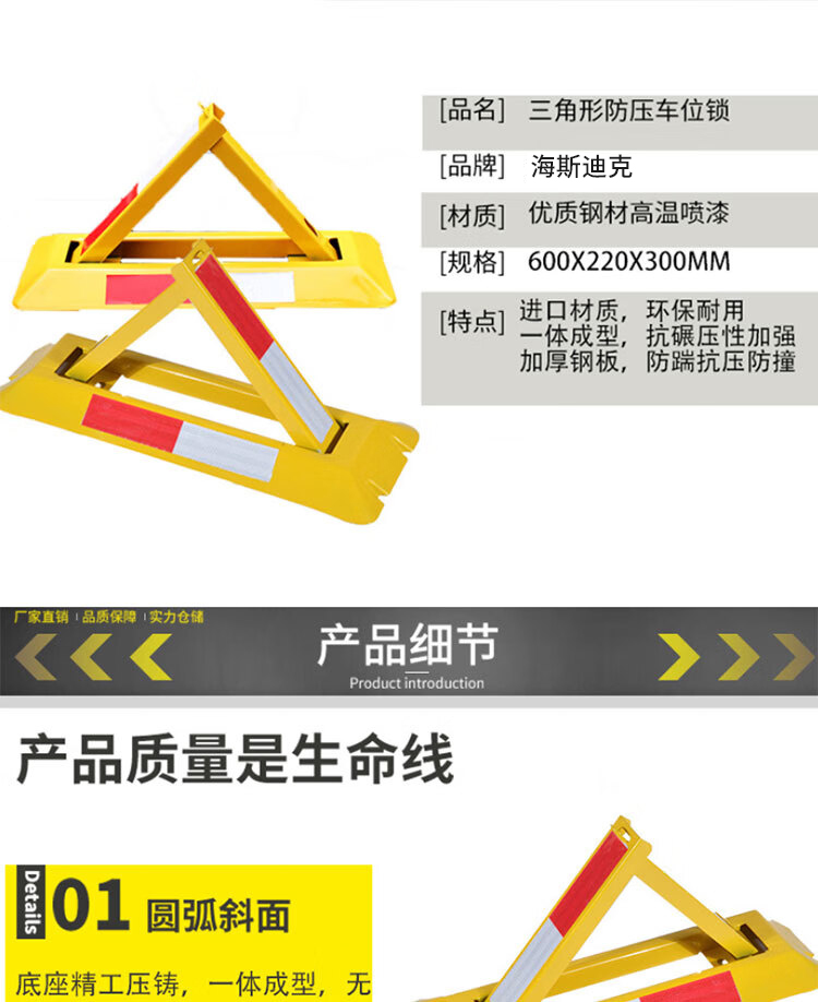 海斯迪克 车位锁地锁 KA22-1 钢 黄色 三角车位锁 1个
