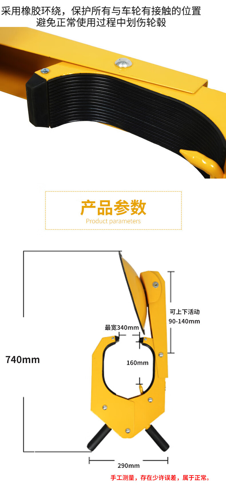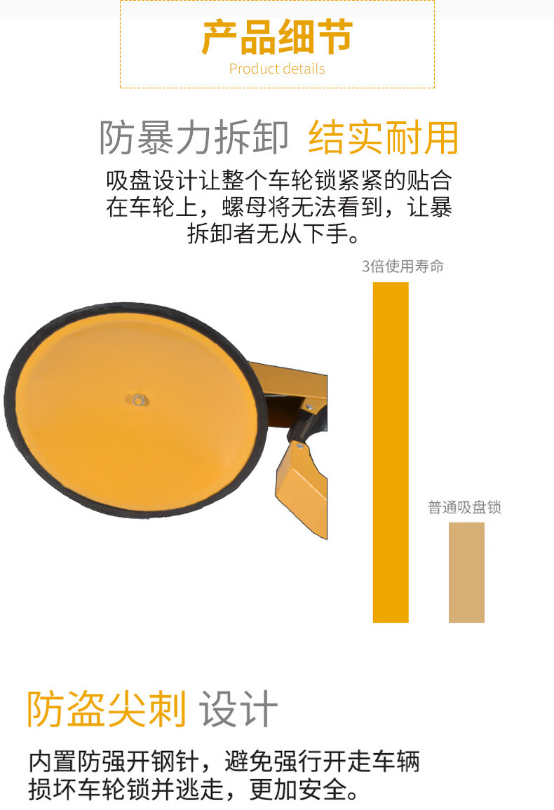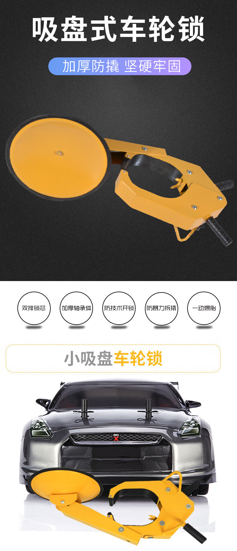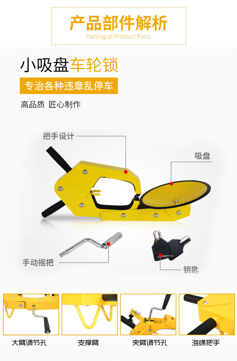 海斯迪克 吸盘式车轮锁 KA22-2 钢+橡胶 黄色 6kg通用型 1个