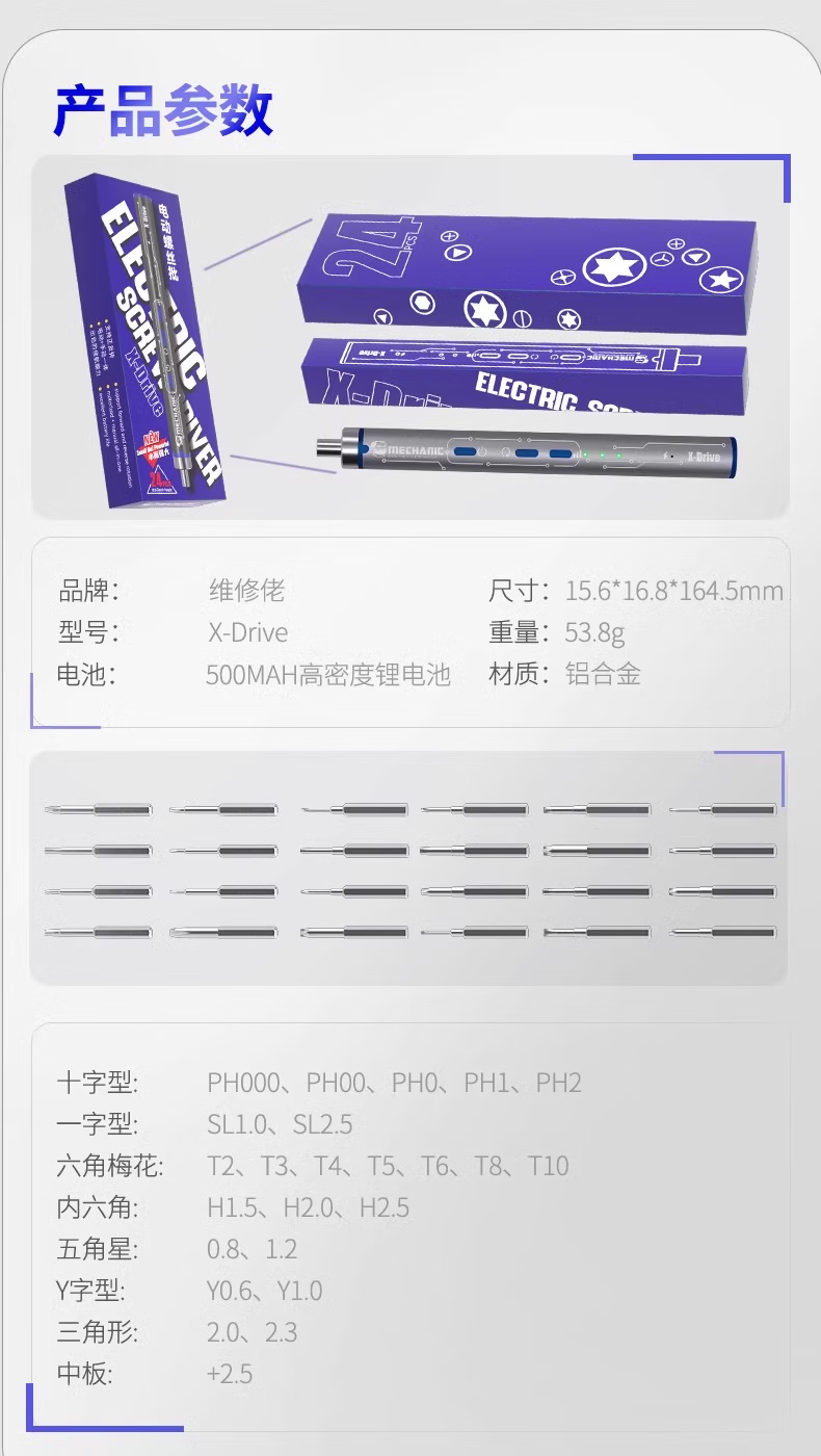 维修佬 多功能电动螺丝刀 X-drive 铝合金 500mAh 充电式 1套