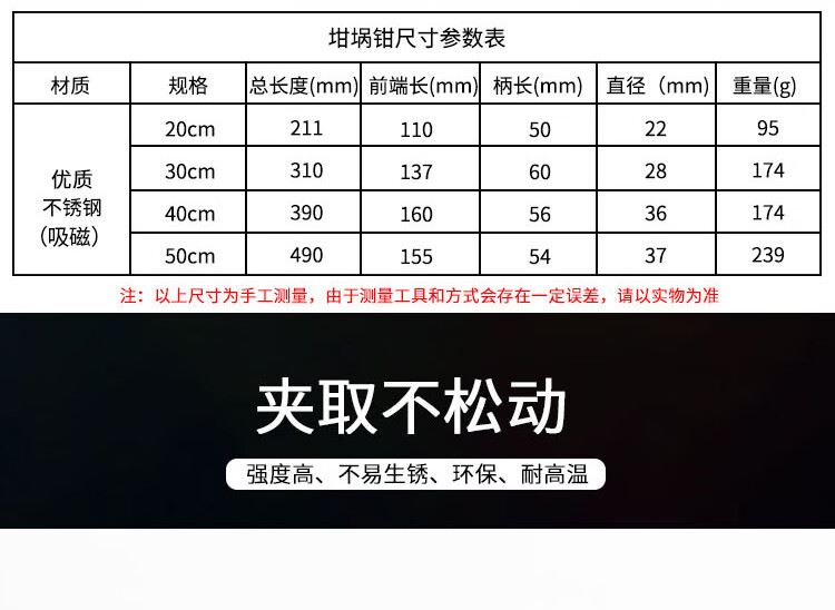 海斯迪克 坩埚钳 KY28-5 不锈钢 20+30+40+50cm 4件 1套