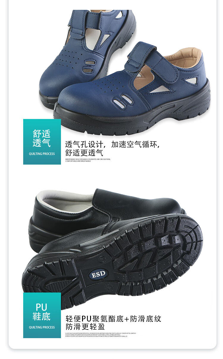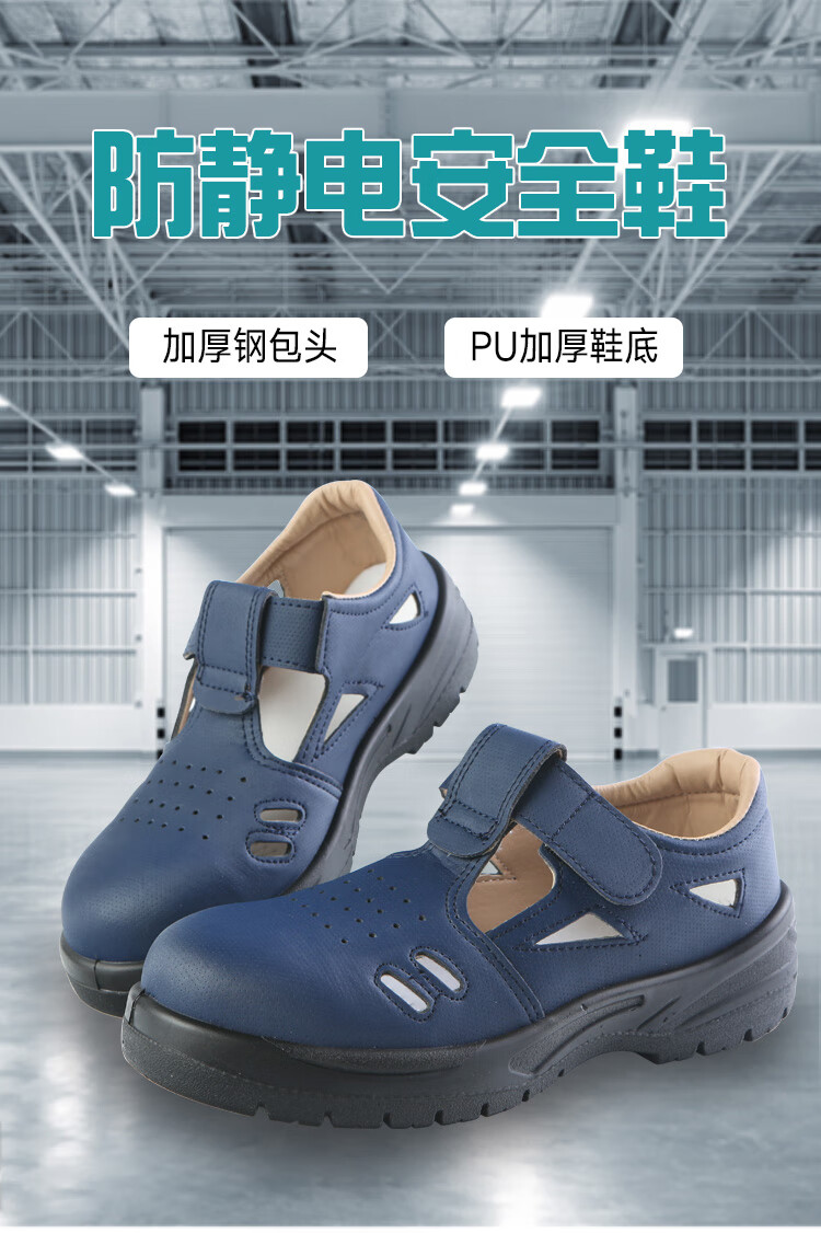 海斯迪克 PU防静电钢包头安全鞋蓝色 KG46-20 43码 1双