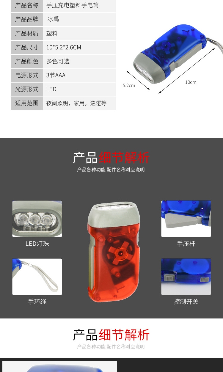 冰禹 手压手电筒 KN20-3 红色 1个