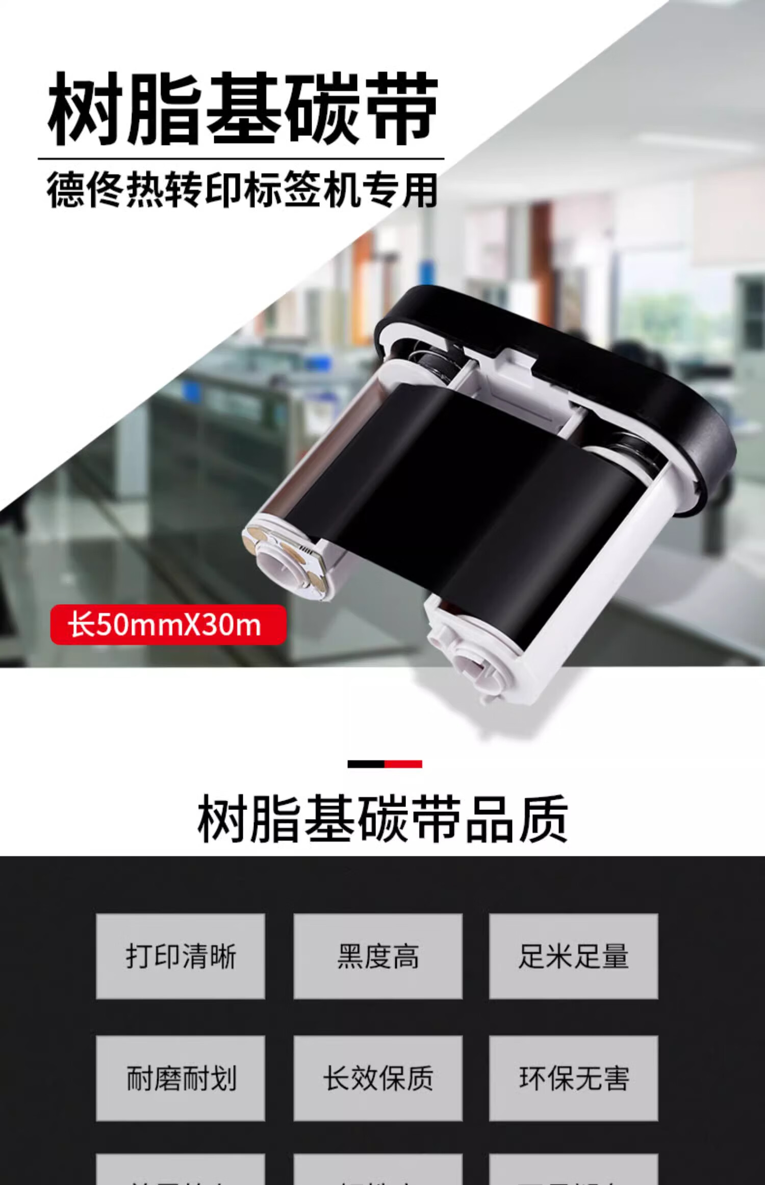 德佟 树脂基碳带 黑色(灰色端盖) 1个