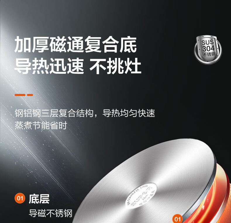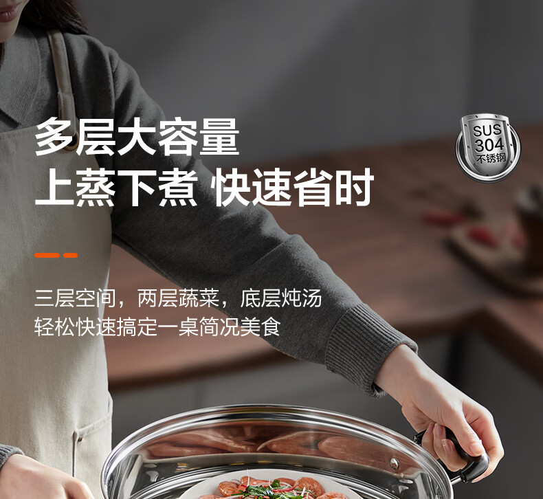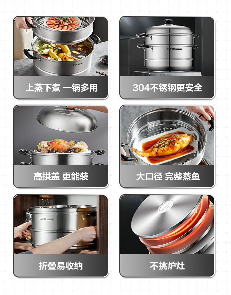 苏泊尔 304不锈钢大号蒸锅 SZ32B5 直径 32cm 1个