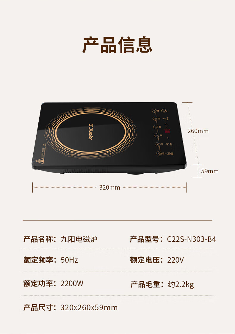 九阳 多功能电磁炉 C22S-N303-B4 2200W 10档 1台