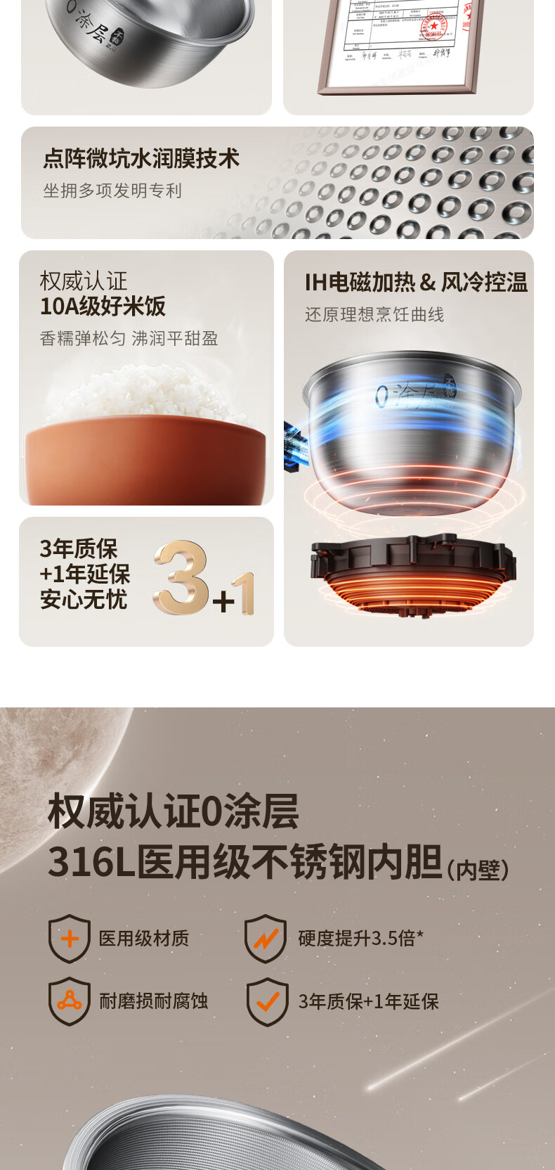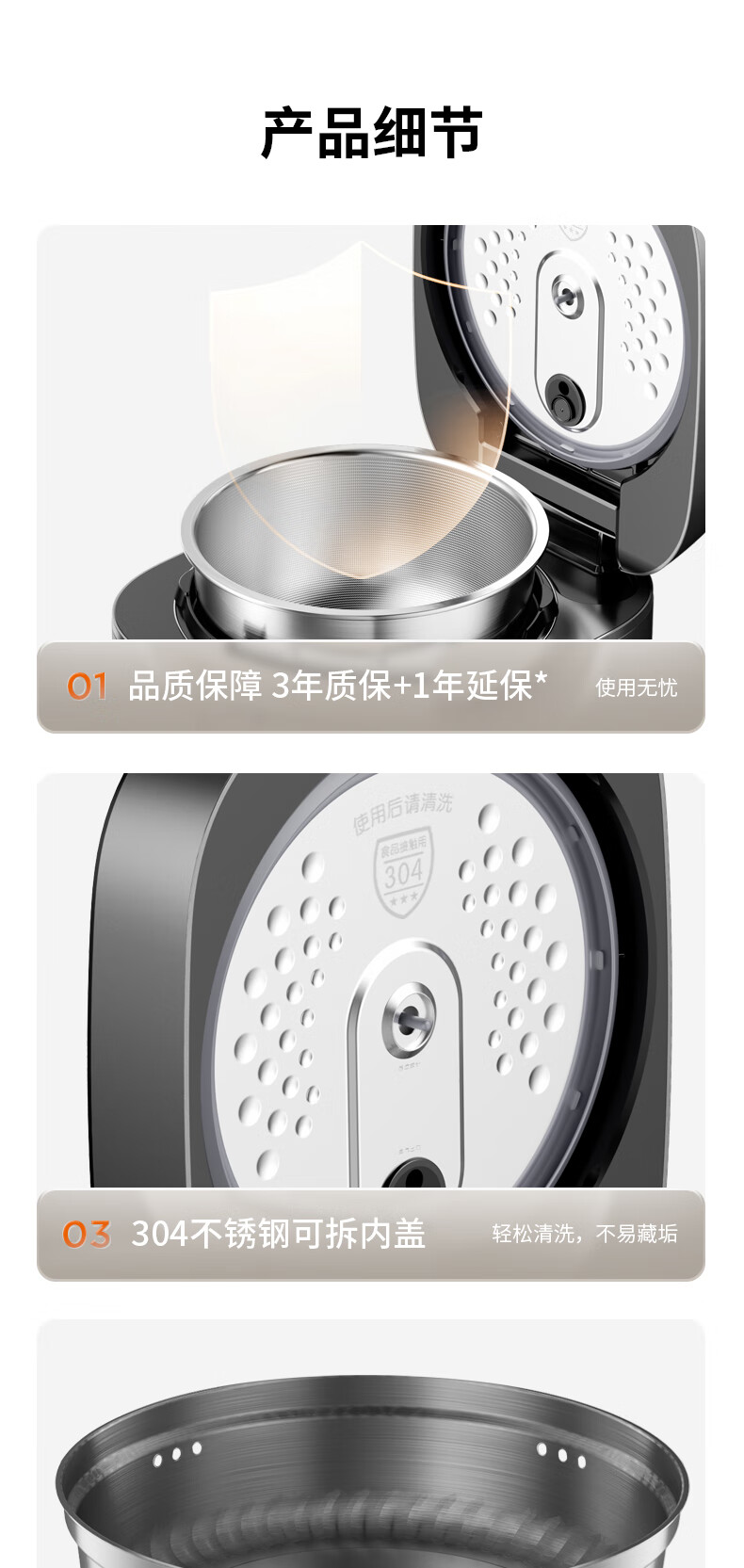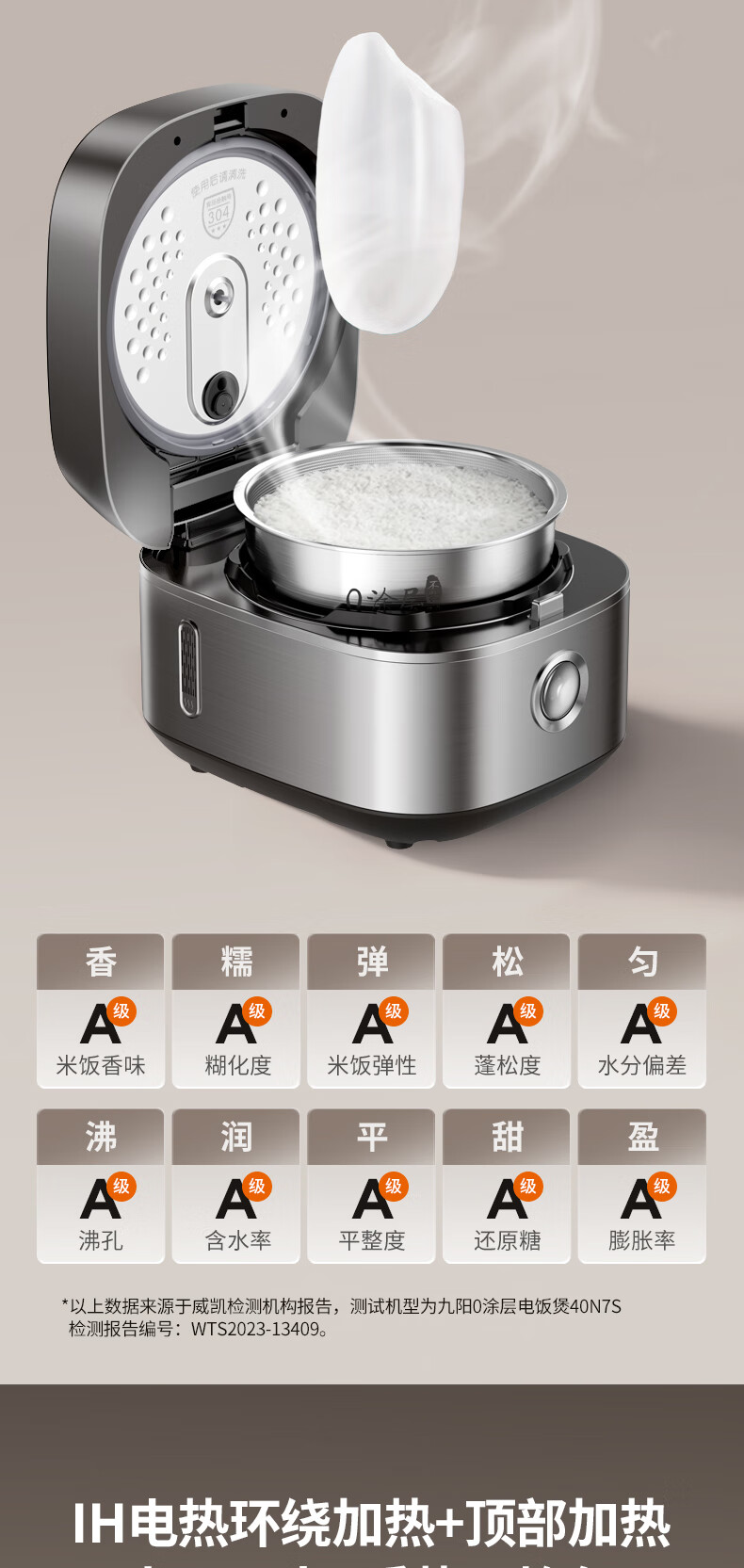 九阳 316L不锈钢0涂层电饭煲 40N7S 4L 1350W 1个